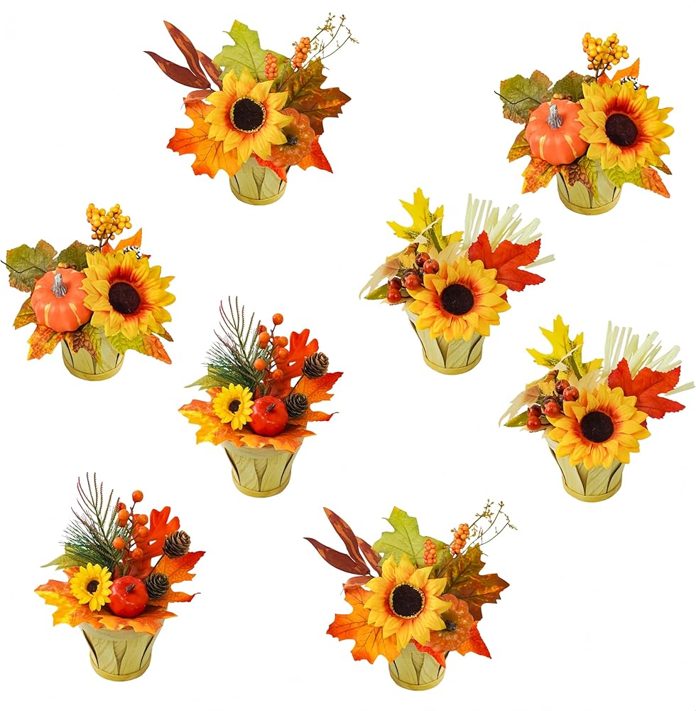 Versatile Function: these fall Mini Potted Plants can be applied to decorate your table, countertop, shelf, reception, or windowsill for your bedroom, living room, balcony, porch, wedding, anniversary, party and more, and they are thoughtful gifts for others who like flower