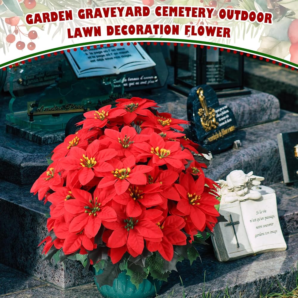 Nice Cemetery Decoration: artificial outdoor poinsettia can also be applied for cemetery decorations, withstanding the ravages of bad weather and keeping alive, offering an enduring symbol of love and respect