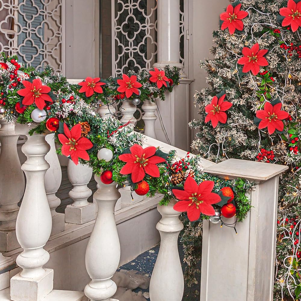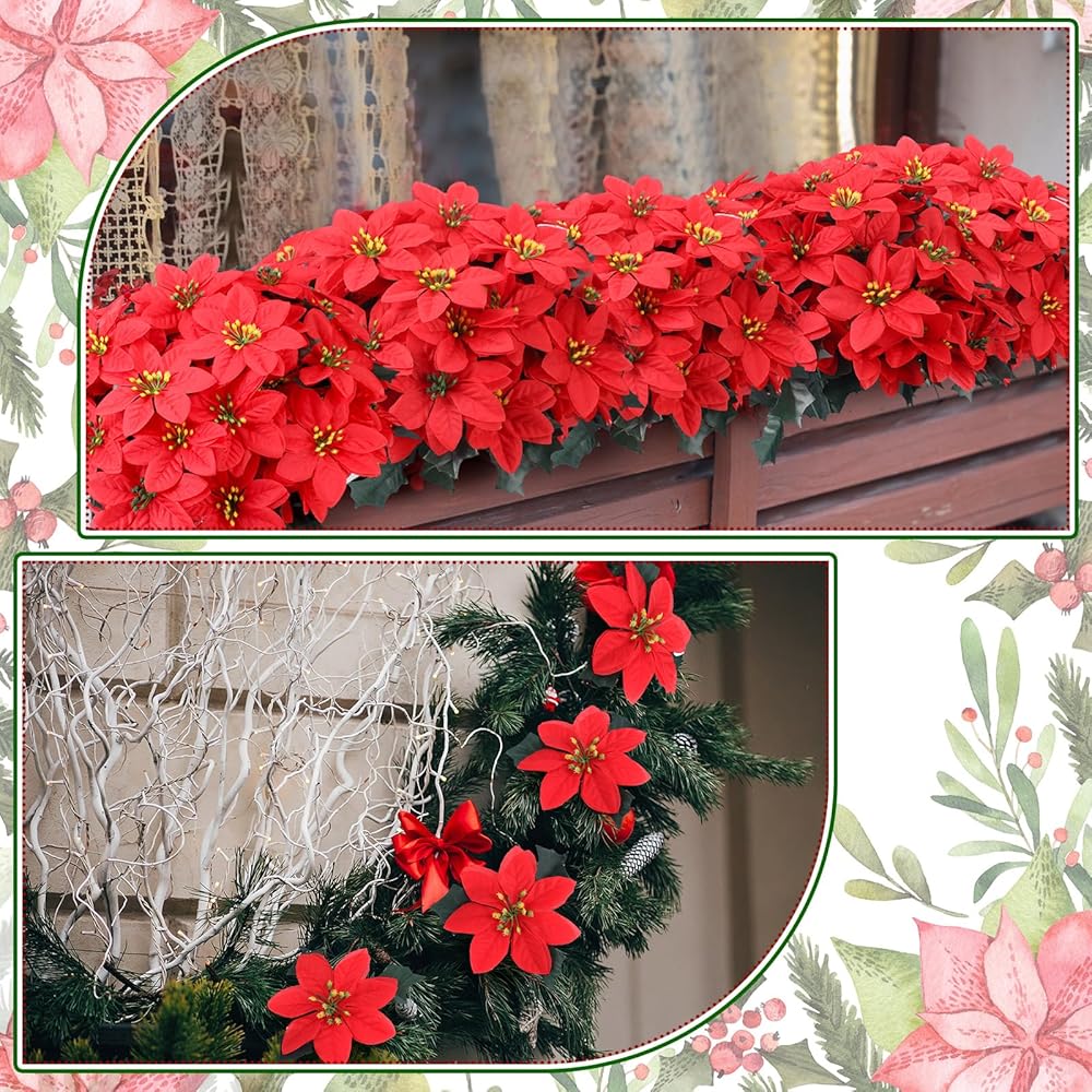 Wide Applications: these Christmas faux flowers can be applied in a wide array of applications; They can be applied to enhance the decor of your Christmas tree, mantel, stairway, centerpiece, wreath, and other areas, brightening up your festive displays