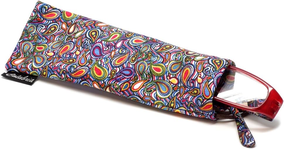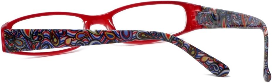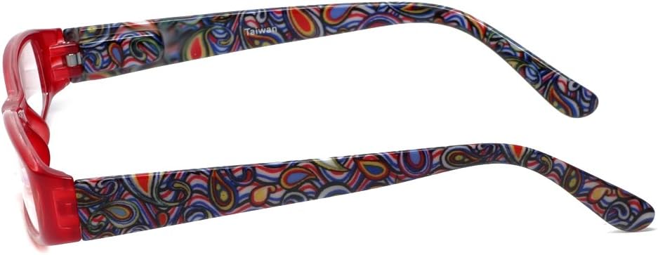 Calabria 735 Women's Reading Glasses are more than just a functional accessory; they're a fashion statement. Offering a timeless and elegant vintage design, these glasses perfectly suit women looking for a blend of style and practicality. The classic shape is available in four vibrant colors - black, purple, red, and teal - ensuring a match for various preferences and personalities. The attention to detail is evident in the design. Comfort is prioritized with spring-loaded temple hinges that provide a secure and snug fit, essential for extended wear. This feature, coupled with the lightweight and robust frame, ensures these glasses are adaptable to different face shapes and sizes. The Calabria 735 Reading Glasses don't skimp on accessories. A matching Pucci print case is included with each pair, doubling as a protective case and a convenient cleaning cloth. This thoughtful touch adds to the overall practicality and aesthetic appeal of these glasses. But what sets these glasses apart is the wide range of magnification options, ranging from +0.50 to +6.00. This range ensures each user finds the perfect fit for their specific needs, whether it's for reading or other close-up tasks. Design-wise, the glasses feature a striking translucent solid color front and vivid paisley pattern temples. This design detail, present both inside and outside of the temples, brings a sophisticated and fashionable flair to the overall look of the glasses. In summary, the Calabria 735 Women's Reading Glasses provide an unmatched blend of style, comfort, and functionality. These glasses are not just a necessary vision aid but a stylish accessory for the modern, fashion-forward woman. They're more than glasses; they're an extension of your personality.