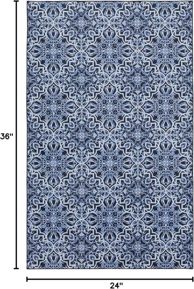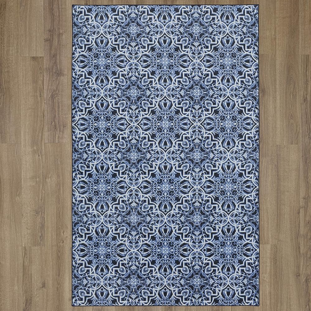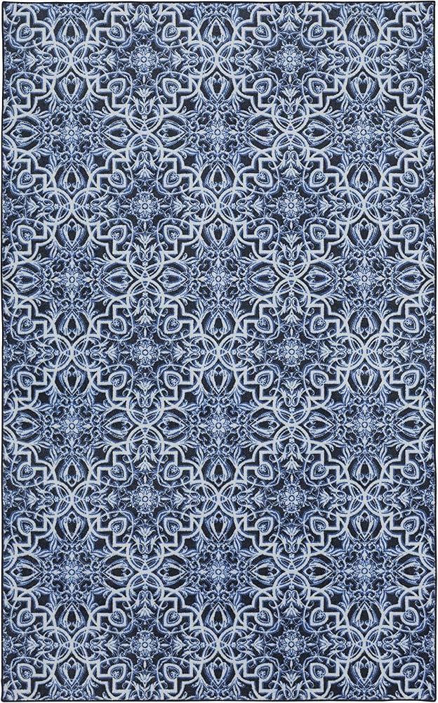 Influenced by the delicate details and ornate artistry of timeless Moroccan tiles, the Mohawk Home Amstel Area Rug features globally-inspired style, available in a variety of bold color options, including navy and brown. Made from exclusive EverStrand, a premium polyester yarn created from post-consumer recycled plastic bottles, this eco-friendly rug offers a soft feel and superior color clarity with the dependable durability needed for busy households. Available in runners, scatters, and popular rectangle sizes such as 5x8 and 8x10, this area rug design is a great choice for adding vibrantly detailed styling to any space in your home.