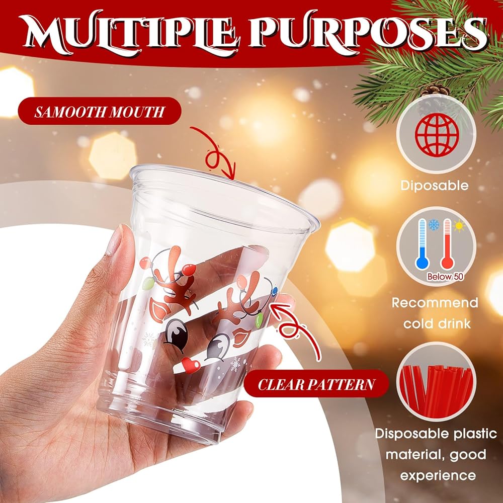 With accompanying straws and lids, these Xmas plastic cups make it easy for your guests to enjoy their beverages conveniently and safely. The lids help to prevent any accidental spills, making them an ideal choice for both kids and adults at any holiday themed party.