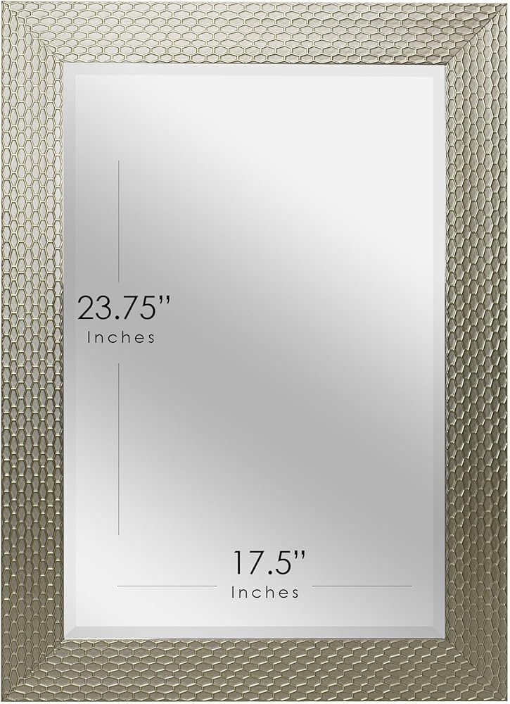 Head West Champagne Honeycomb Embossed Beveled Framed Wall Mount Vanity Mirror, Accent Decorative Mirror for Wall Decor, Modern Bathroom Mirrors for Over Sink, Bedroom Living Room Entryway 25.5"x31.5"