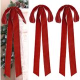 4 Pcs Velvet Christmas Bows 23.5 x 8.7 Inches Large Velvet Christmas Staircase Wreath Bows Rustic Crafts Velvet Bows for Christmas Indoor Outdoor Decoration