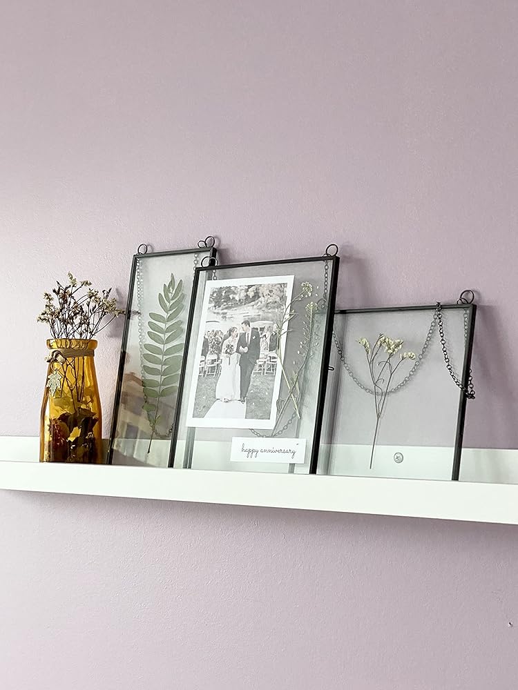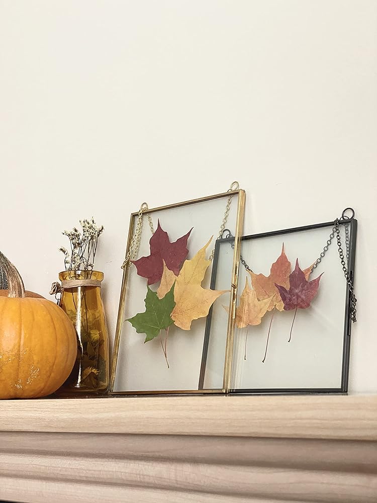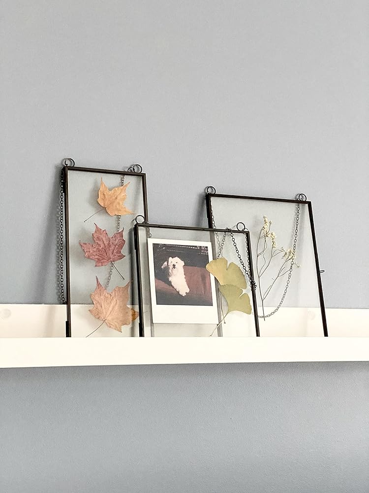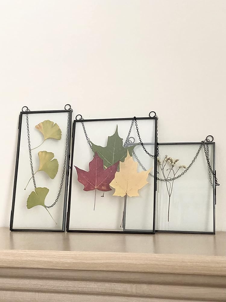 Elegant and unique way to display flowers, herbarium, cards and art. Use these double glass frames to hang up crafts, DIY dried flowers, leaves, Polaroid, sonogram, postcard and pictures.