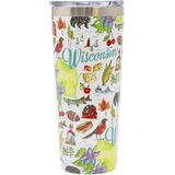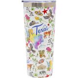TEXAS: White tumbler decorated with outline of Texas and full-color accents that represent The Lone Star State