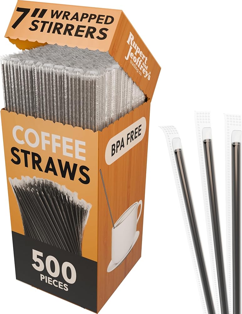 Coffee stir straws have never been more convenient with our Individually Wrapped 7 Inch Long Coffee Stirrers. Imagine the ease of use with these stir straws for coffee, designed to enhance your coffee experience while ensuring hygiene and cleanliness. Meticulously crafted, these black straws for cocktails measure 178mm in length with a 3mm inner diameter, perfect for mixing your beverages. Whether you're stirring a hot cup of coffee or a refreshing cocktail, these cocktail straws for drinks are designed to do the job efficiently, adding a touch of elegance to any setting. Generously packaged in a count of 500, these coffee stir sticks are perfect for large gatherings or for stocking up your coffee shop or bar. The high quantity of these stir sticks for coffee bar ensures that you'll always have a stirrer on hand when you need one, plus the compact packaging makes storage easy and convenient. Constructed from durable material, these cocktail stirrers are designed to withstand the heat of hot beverages without melting or deforming. With these drink stirrers cocktail, you can stir your drink as vigorously as you need without the stirrer breaking or bending, enjoying your beverage exactly the way you like it. To sum up, our stirring sticks offer a combination of convenience, functionality, and style, essential for any coffee lover or cocktail enthusiast. Invest in these drink stirrer and elevate your beverage experience.