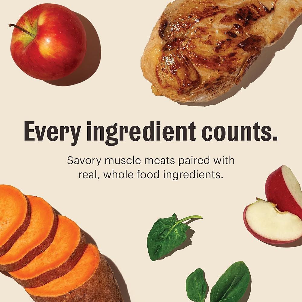 We believe that health starts with human grade, whole foods. We teamed up with a chef to make this chunky, hearty stew with cage free chicken, sweet potatoes, spinach with just a hint of cinnamon. It's a complete meal or healthy mix-in that helps you boost your pup's health and happiness from the inside out.