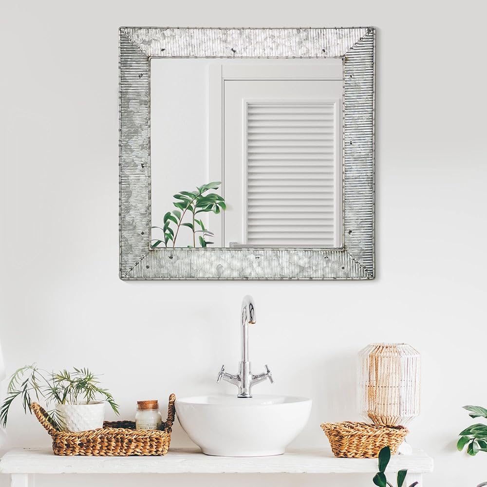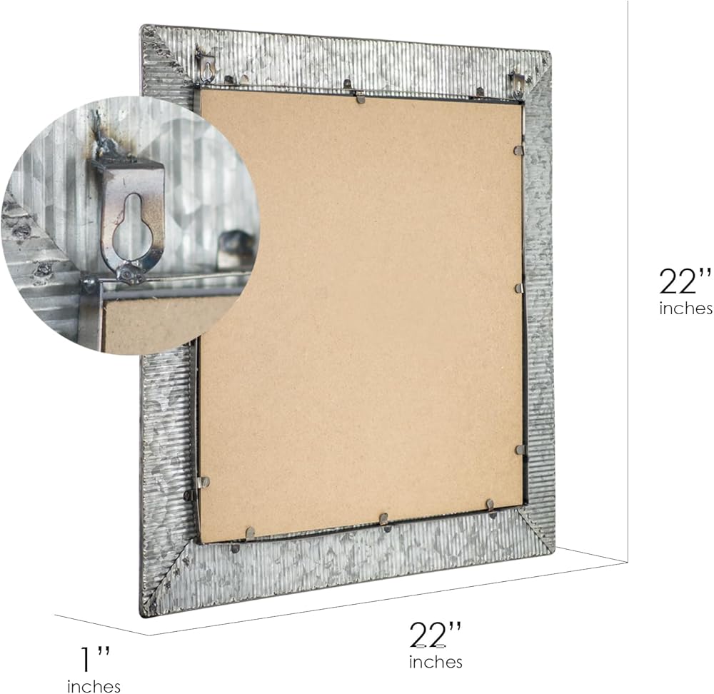 Head West Galvanized Metal Square Framed Wall Mounted Vanity Mirror, Accent Decorative Mirrors for Wall Decor, Rustic Farmhouse Bathroom Mirrors for Over Sink, Bedroom, Living Room, Entryway 22"x22"