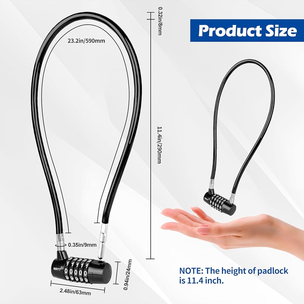 Lawnize cable locks with combination offer a secure and convenient solution for protecting your valuable possessions. These heavy-duty steel cable ropes feature a 4-digit resettable combination lock, allowing you to create your own personalized code for added security. This wire rope padlock has multiple sizes to choose from,, these cable locks are versatile and can be used to secure bikes, lockers, file cabinets, wardrobes, small fences, gates, and even pool equipment. The durable construction ensures long-lasting performance, while the compact size makes them easy to carry and store. Whether you're looking to secure your belongings at home, in the office, or on the go, Lawnize cable locks with combination provide a reliable and user-friendly option. Protect your valuables with confidence and peace of mind.