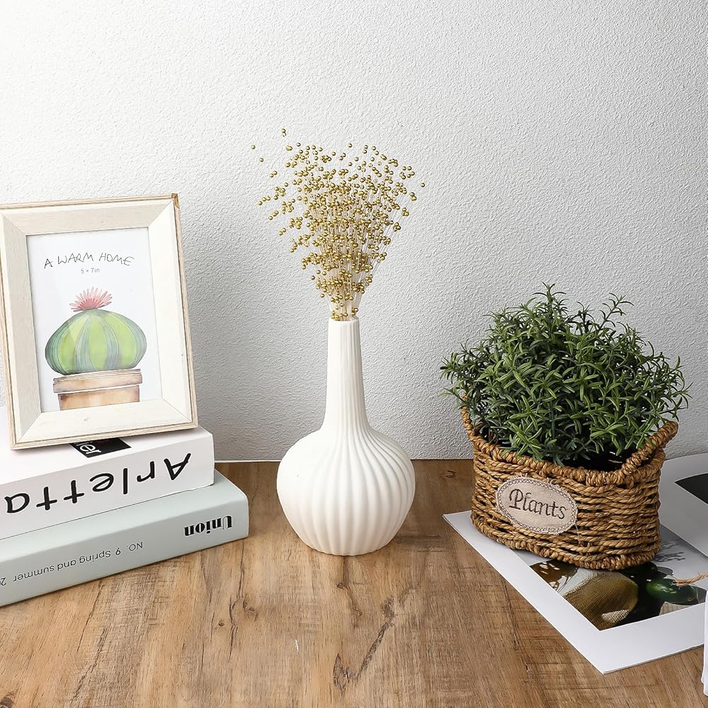 【Size Information】The gold pampas grass are about 21cm/8.2inch long, and each pearl is about 0.16 inches/4mm in diameter. The size is moderate and very suitable for decoration