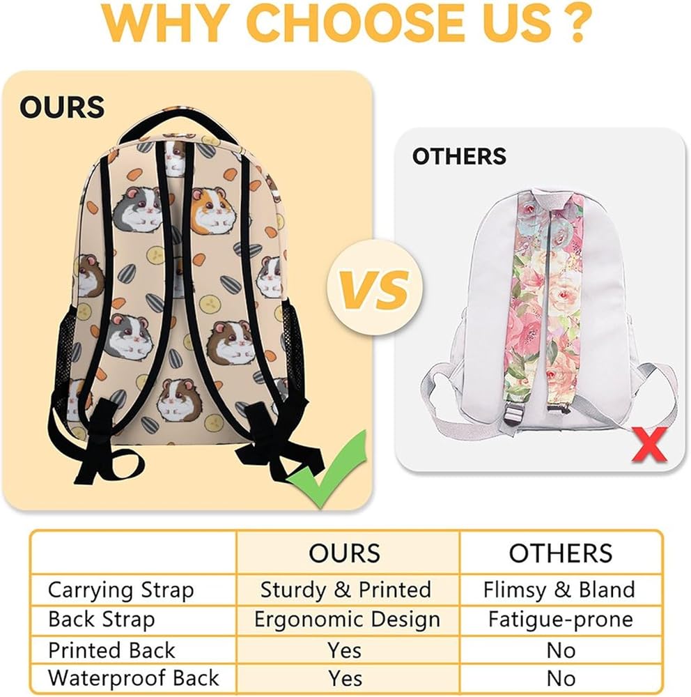 • EYE-CATCHING & FUNCTIONARY: Back to school with pretty guinea pig pattern printed and multifunctional backpack. This kids backpack fits a variety of student demands. You can also customize your own name or text on the surface of backpacks, lunch bags and pencil cases. Not easy to lose and has personality.