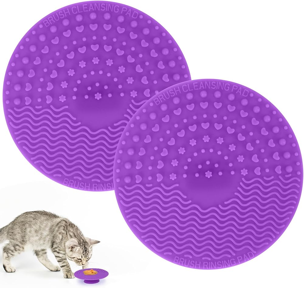 Lick Mat for Cats, Licking Mat for Cats Small 2 Pack with Suction Cups, Small Lick Mat for Small Cats, Boredom Anxiety Reducer, Round Cat Licking Mat, Alternative to a Slow Feed Cat Bowl or Dish
