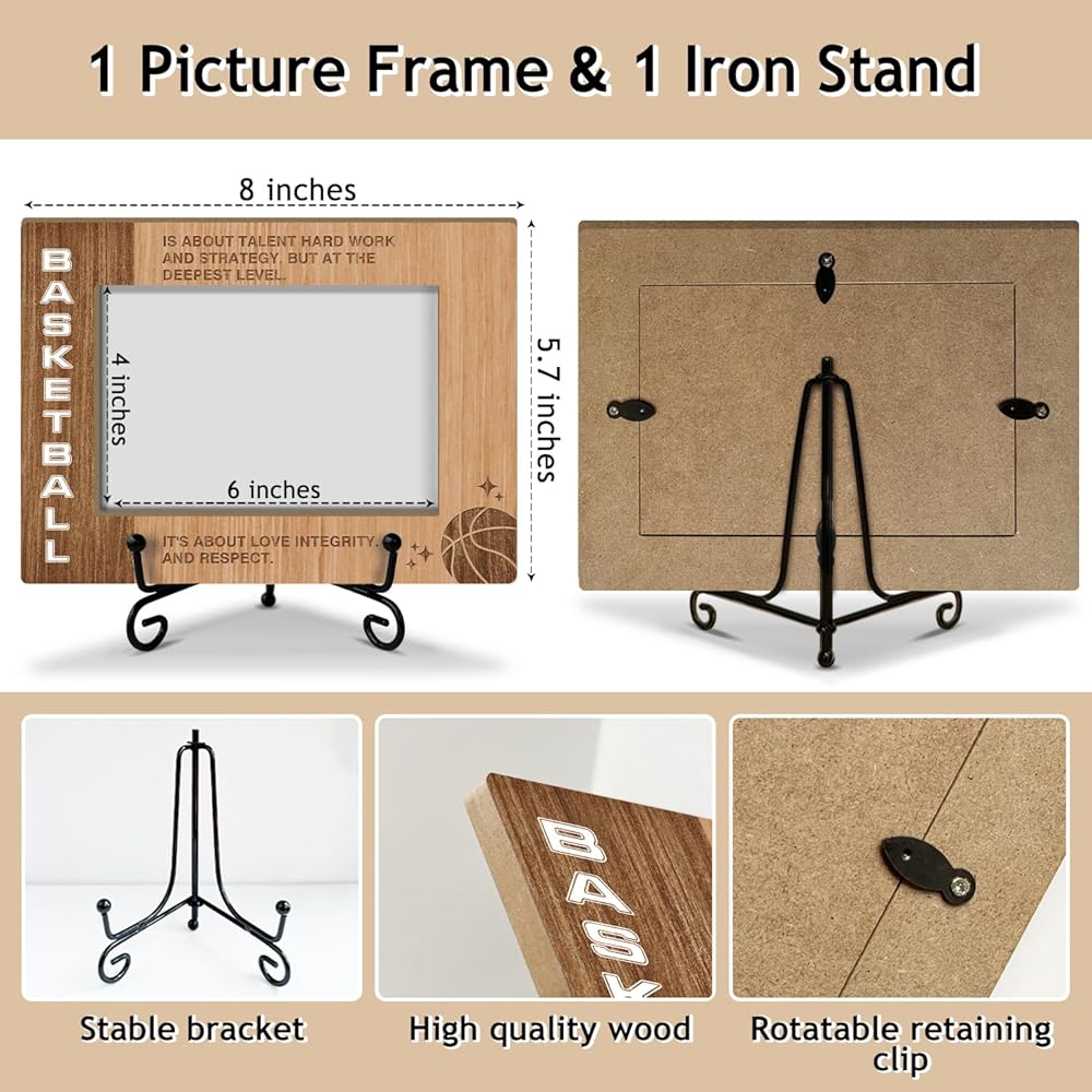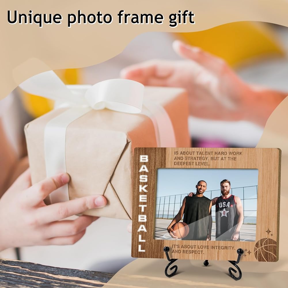 Basketball Theme Wooden Photo Frame - Sport Themed Gifts for Team Photos, Coach Birthday Retirement Gifts - 40