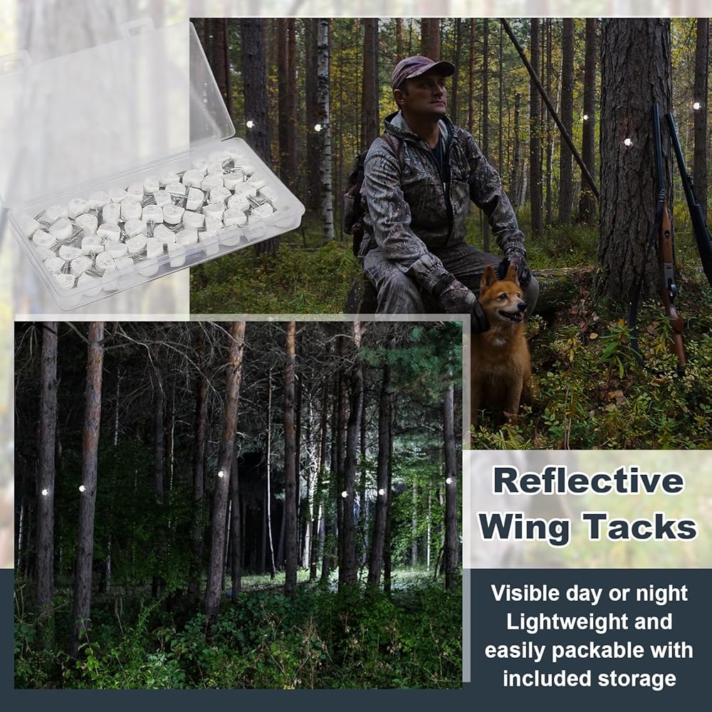 Reflective Design: reflective Wing Tacks for hunting can withstand the harsh elements in your outdoor adventures, they are built to last, providing convenience for your involvement in outdoor activities without sacrificing performance and reliability; You just need to attach them to a tree or the ground, they won't fall easily, easy and effortless to use