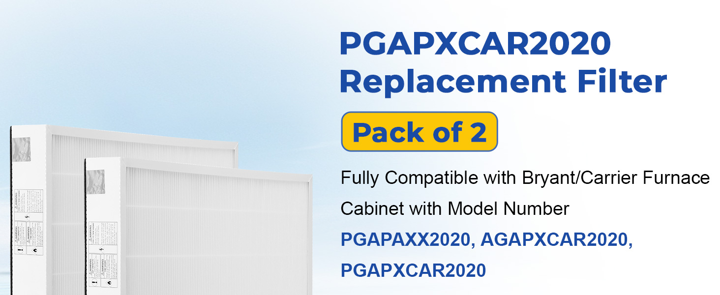 【100% Fit】: PGAPXCAR2020 replacement filter with 2 packs that fully compatible with Bryant/Carrier furnace cabinet. Our PGAPXCAR2020 filter fits for Carrier furnace series with model number PGAPAXX2020. AGAPXCAR2020 is the latest model number of PGAPXCAR2020