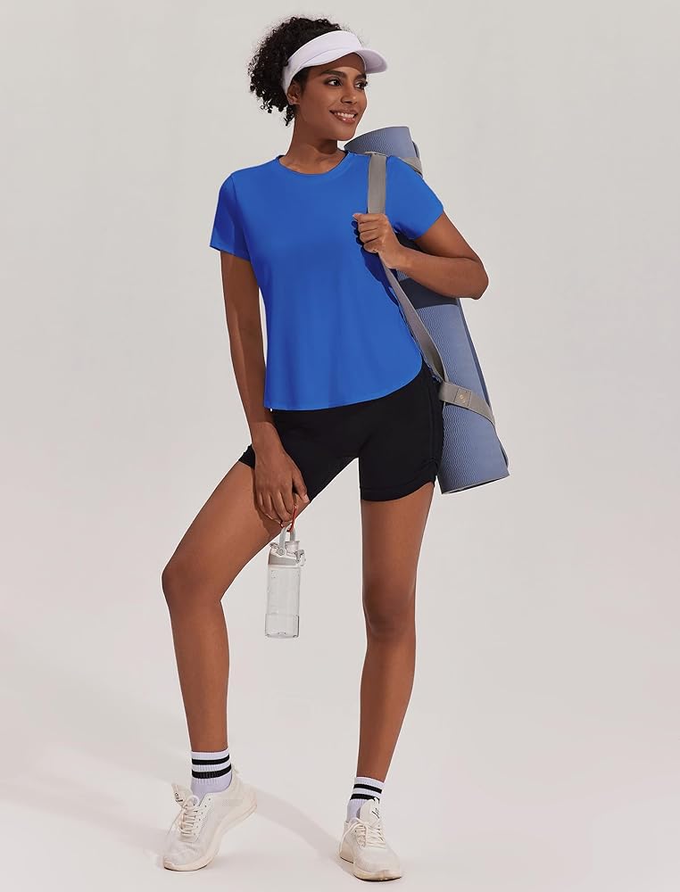 Pinspark womens Short Sleeve Athletic Top with Side Slit