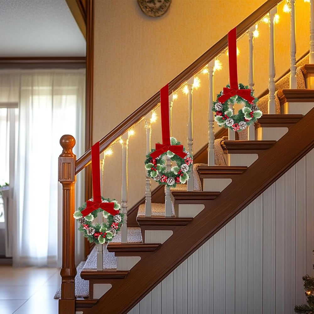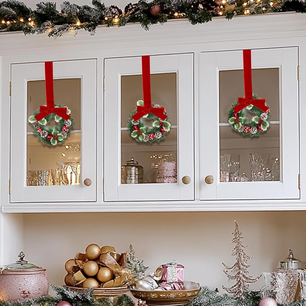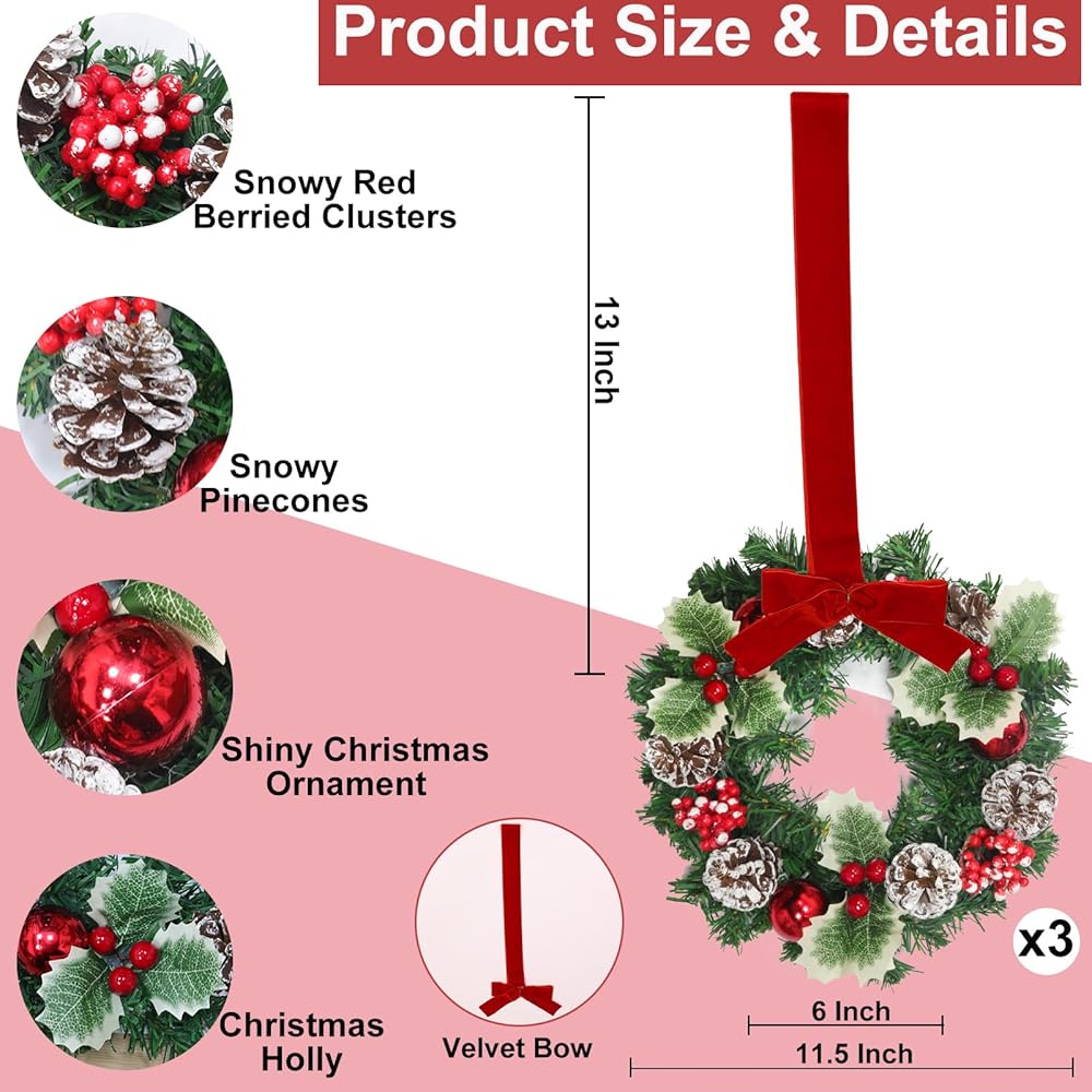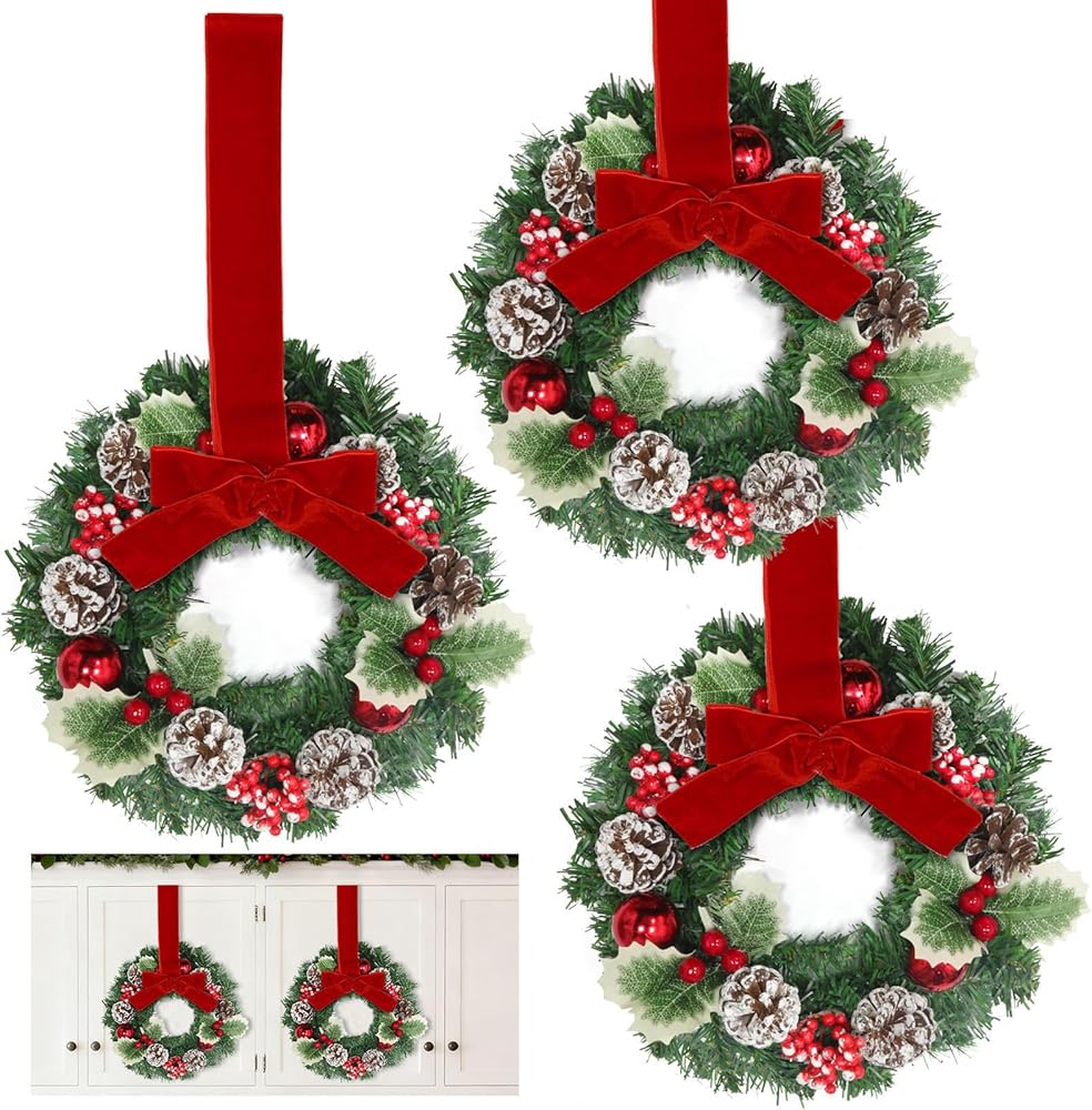 3 Pcs 12 Inch Small Christmas Wreath Mini Christmas Door Wreath with Ball Frosted Pinecone Berried Holly Christmas Decorations for Indoor Window Wall Stairs Room Home Office Decor Kitchen