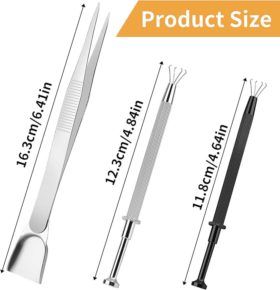 Pack contents: You will receive 2 pickle grabber (Length 11.8cm/12.8cm) and 1 spatula head tweezer (Length 16.3cm).Precision jewellery tweezers can be use to pick up jewellery or small items and the spatula can be use as a spoon.