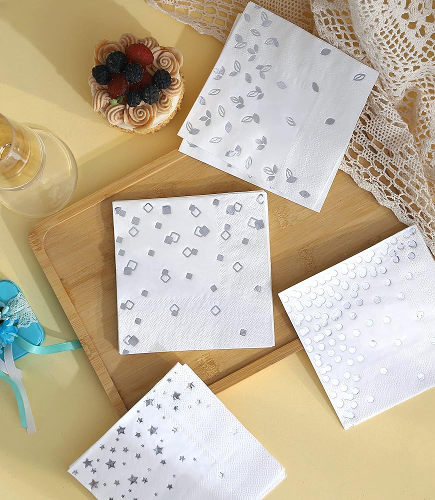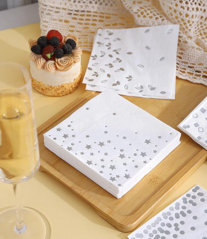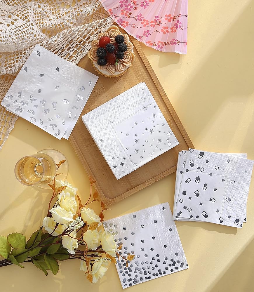 If you're looking for classy sparkly design napkins, here you are! Winoo design four different beautiful shimmering gold foil patterns on paper napkins, and they can perfectly coordinate with gold dinner plates, gold cups, and gold utensils, or Winoo paper napkins can just combine with simple white plates on the table, and your guest will be definitely delighted to see the super cute combination.