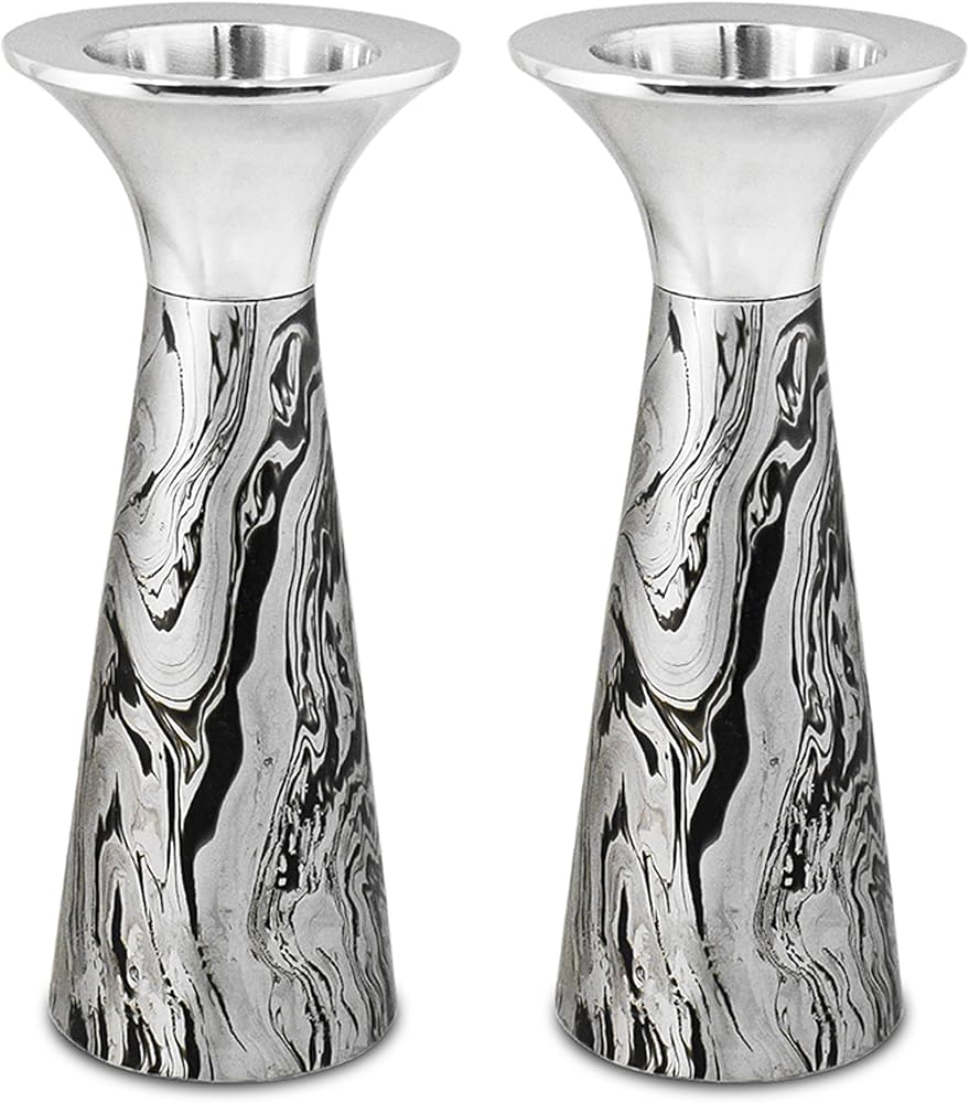 Elegant Marble-Effect Dual-Use Candleholders | 6.4" Tall Aluminum Holders for Thick Candles and Tealights Add a touch of sophistication to your home décor with this stunning set of dual-level candleholders. Crafted from high-quality aluminum and wrapped in a beautiful marble-effect decal, these candleholders are designed to elevate any room or occasion. Dual-Level Design The Candleholders feature a two-level cavity to accommodate 7/8" thick taper candles or standard tealight candles, offering versatility in your candle display. Made from durable, lightweight aluminum with a sleek, modern marble decal finish that complements any style, from contemporary to classic. Non-Slip, Non-Scratch Base: Equipped with a non-slip, non-scratch pad to protect your surfaces and keep the holders stable during use. Perfect Size: Each candleholder measures 6.4" tall with a 2.75" diameter, making them ideal for mantels, dining tables, or accent pieces throughout your home. Easy to Clean: The smooth surface allows for easy maintenance and keeps your candleholders looking fresh and polished. Whether you're setting the mood for a romantic dinner, celebrating a special occasion, or enhancing your everyday décor, these marble-wrapped candleholders will add elegance and charm to any setting.