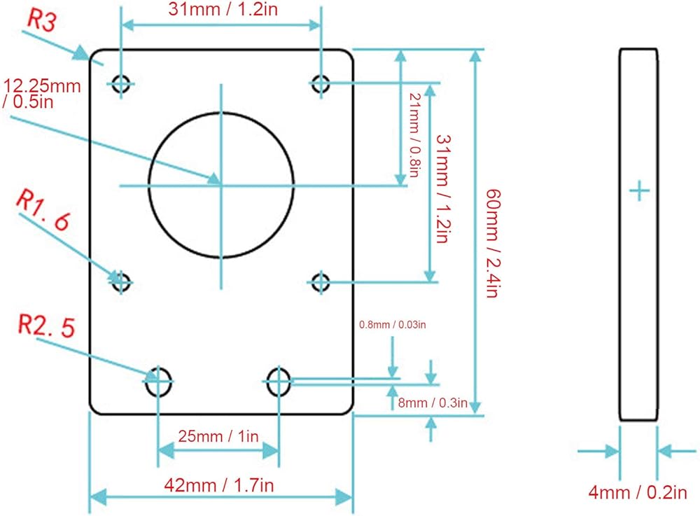 APPLICATION: Motor mount plate, suitable for NEMA 17 42 series stepper motor approx. 42 x 42mm 1.7 x 1.7in.