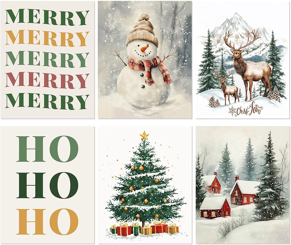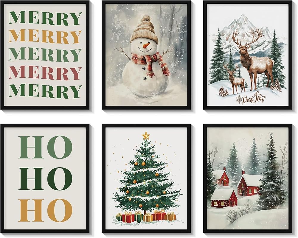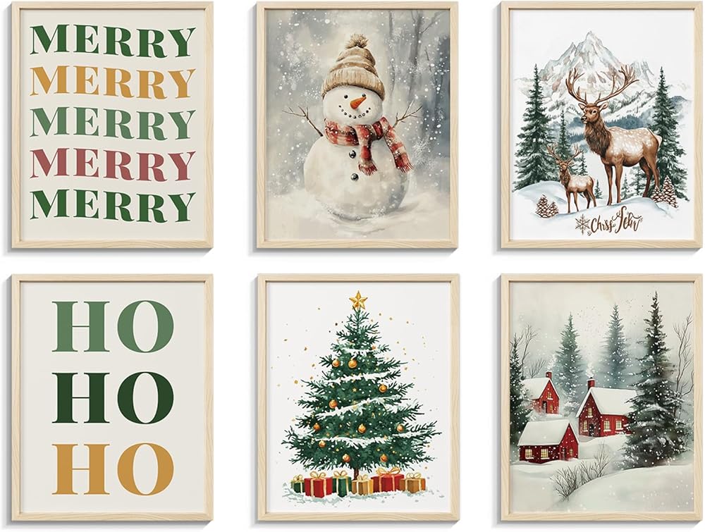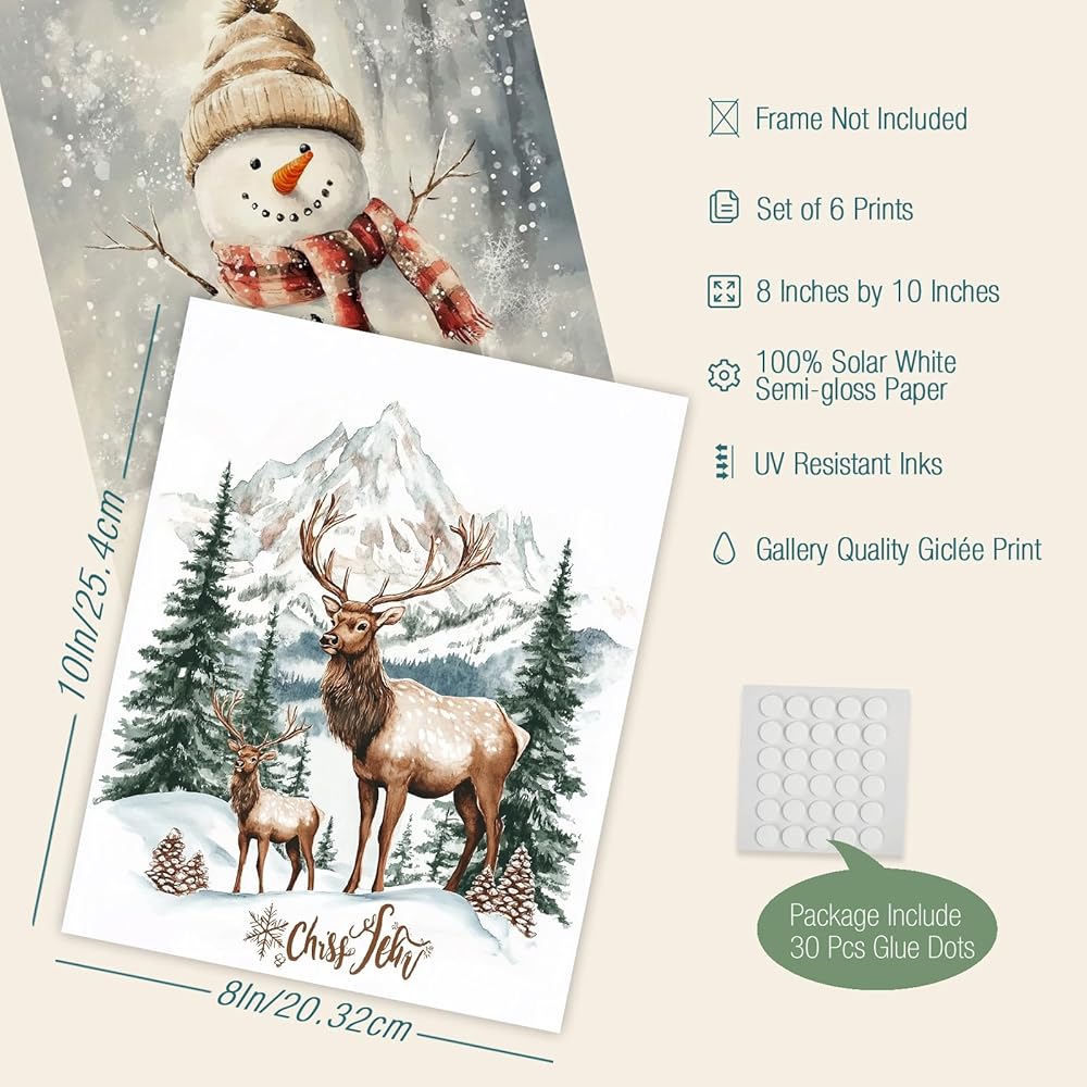 InSimSea 6 PCS Christmas Tree Wall Decor Posters Prints Set, Modern Home Decor Wall Art for Living Room, Snowman Painting Print Decor, Winter Decoration for home kitchen, (8X10 inches, Unframed)