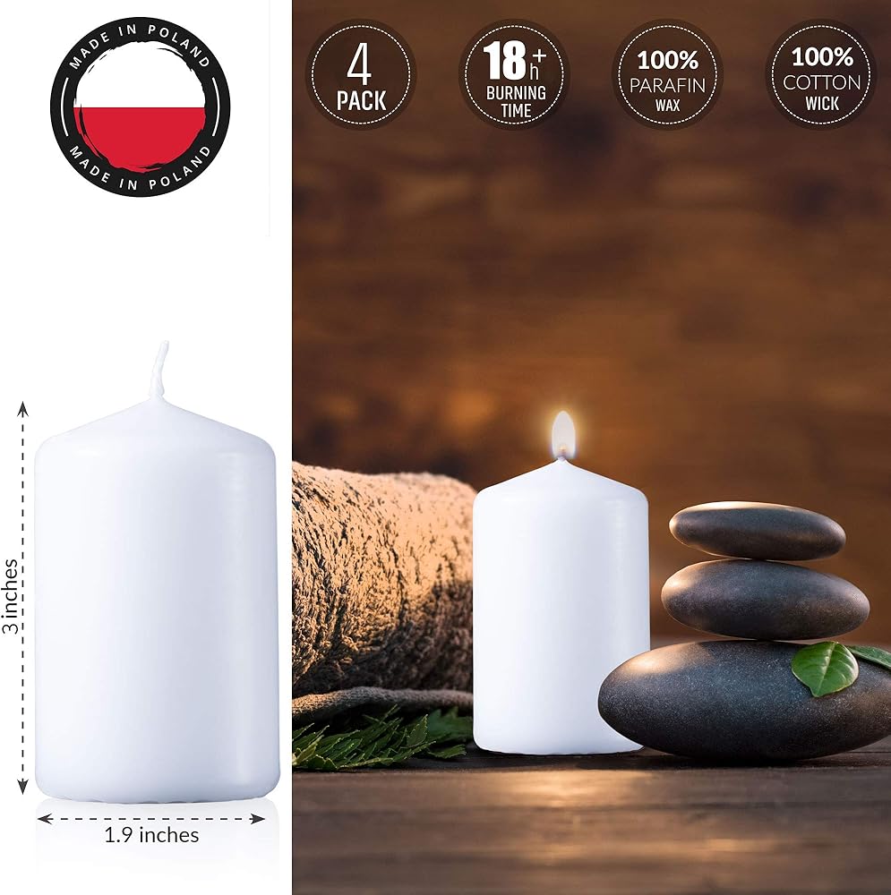 Poland. Our paraffin pillar candles are the no drip candles you can trust. Click ADD TO CART to order!