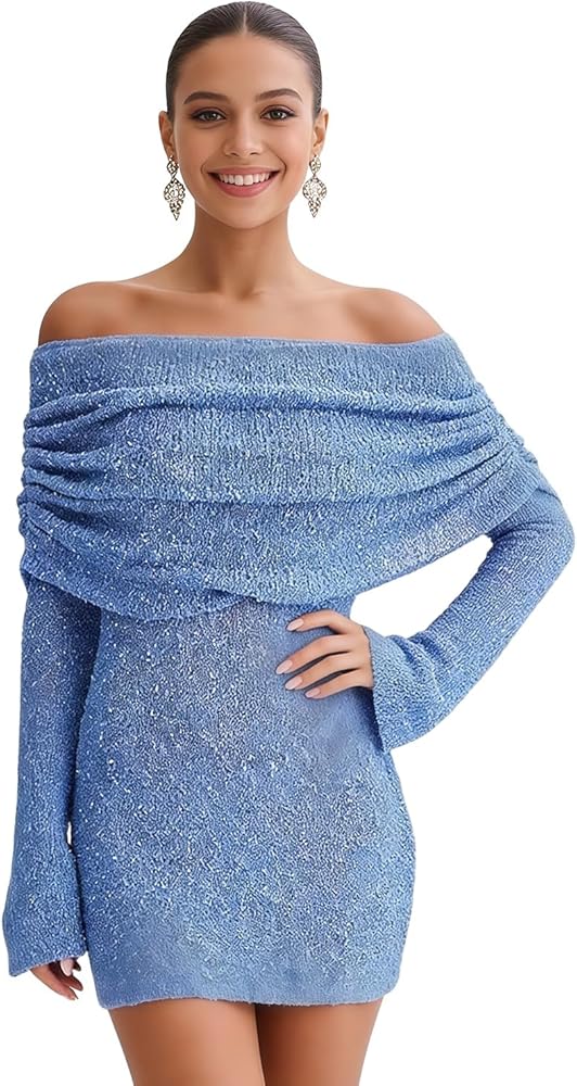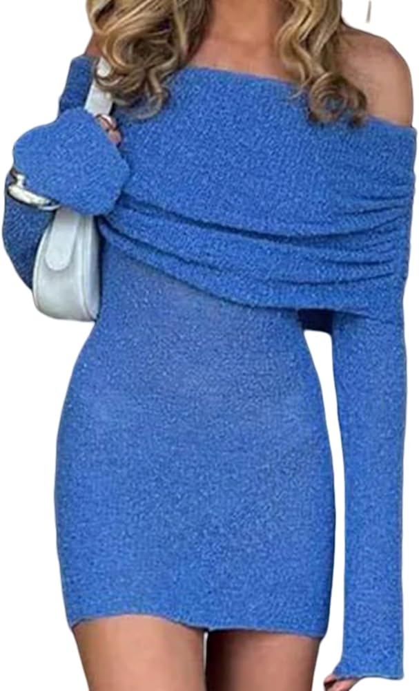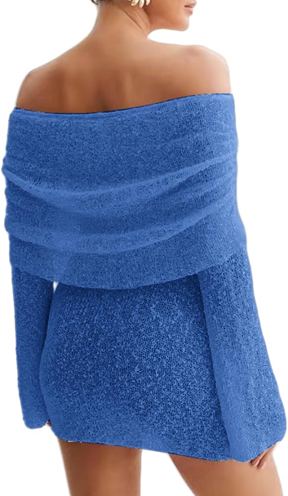 Make a statement with our off shoulder long sleeve elegant knitted dresses that effortlessly captures attention, Perfect match with high heels, boots for a chic and fashionable look