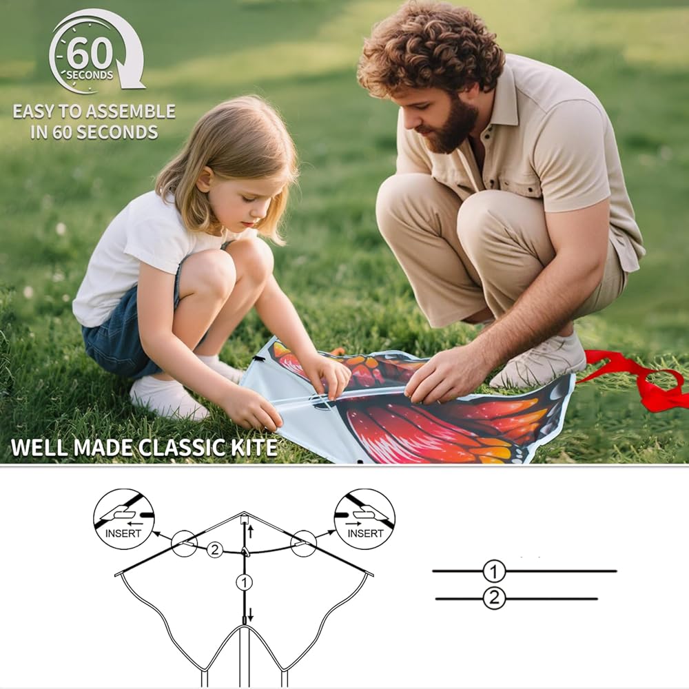 Easy to fly kites: Our kite simple structure and is easy to assemble,easy to fly included 300FT kite string Great for Beginner! Never before has a kite fly so easily, Just take a few steps with the kite! Flying stable in low winds. Perfect for Beach,Park,Outdoor Games & Activities.