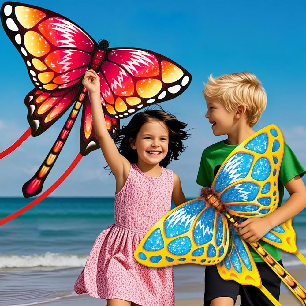 5P Butterfly Design:The kite design of this colorful butterfly kite for kids adults, great kite for kids, adults and beginner. Suitable for all kids of outdoor activity times. Flying kites help your kids discover a different pastime go to outdoor. Perfect birthday gifts for boys girls all ages.