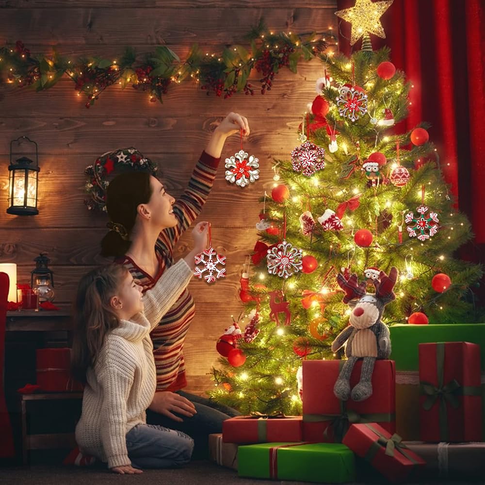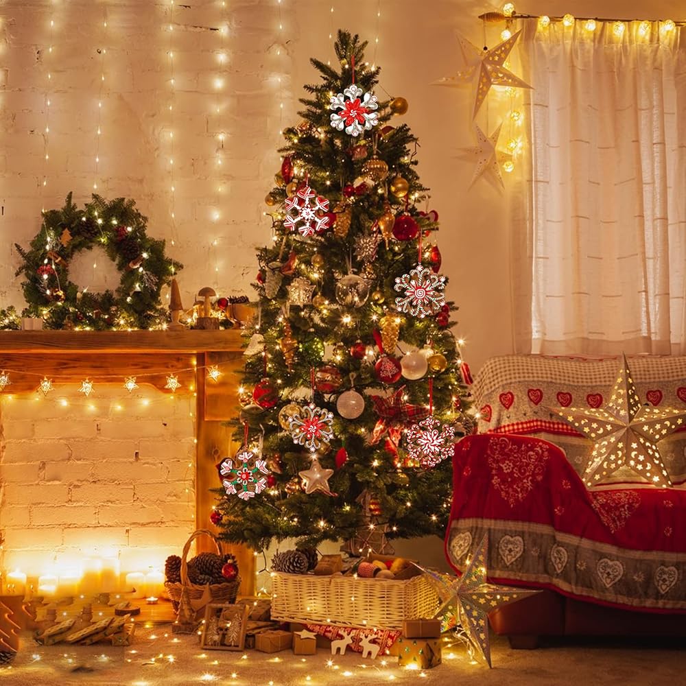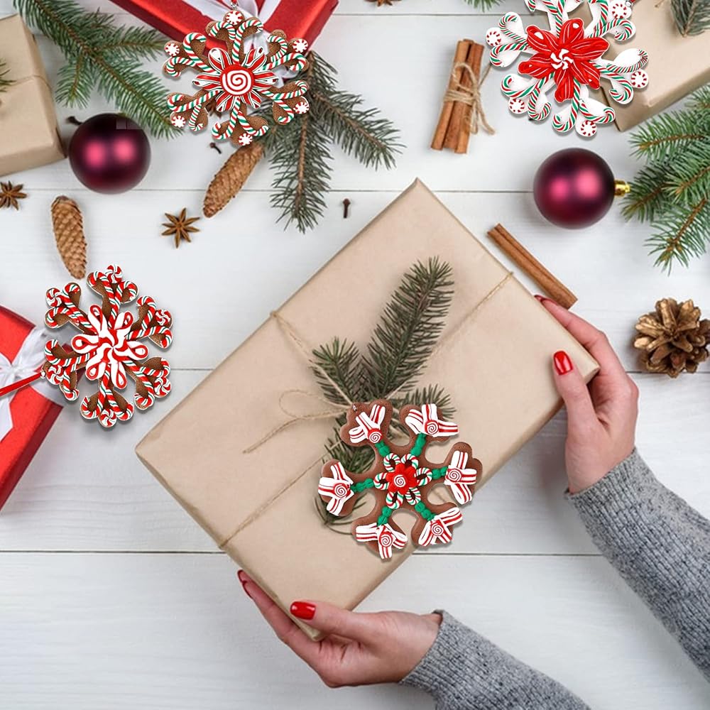 UNIQUE DESIGN: We have incorporated the most popular gingerbread, lollipops, candy canes, peppermint, ribbons into snowflake ornaments, the colors and shapes are perfectly matched to make the ornaments perfectly fit the Christmas theme and bring a warm and happy Christmas to your home Ambience. Your Christmas tree needs this unique Christmas snowflake ornament.