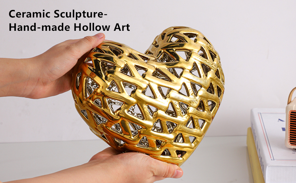 Size: The unique ceramic abstract hollow love statue ornaments are sized H:7.7"*L:8.3"*W3.9", suitable for home decoration sculptures, office decoration.