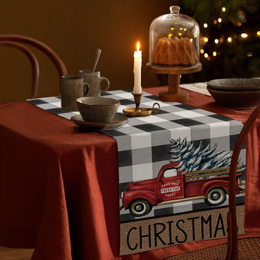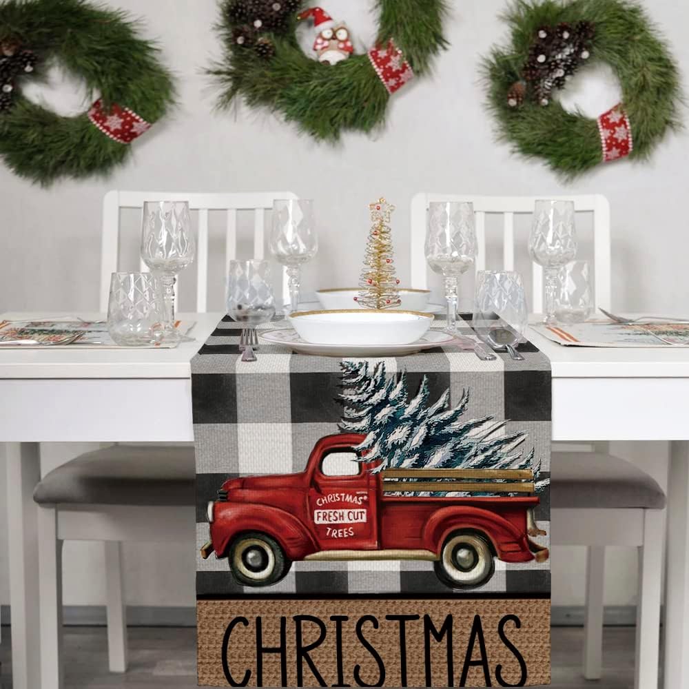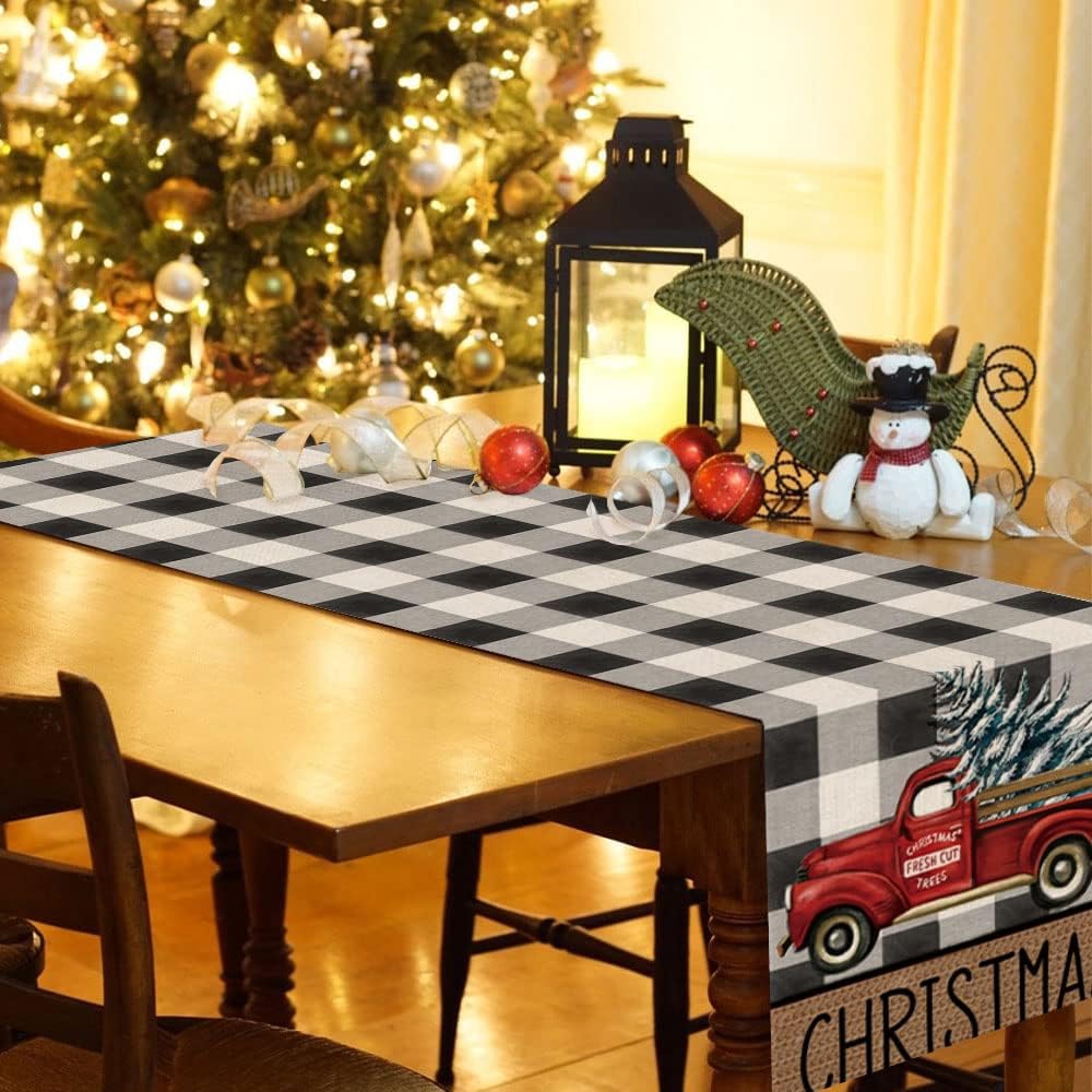 ARKENY Christmas Buffalo Plaid Table Runner 13x72 Inches, Truck Tree Winter Holiday Indoor Outdoor Table Decoration for Home