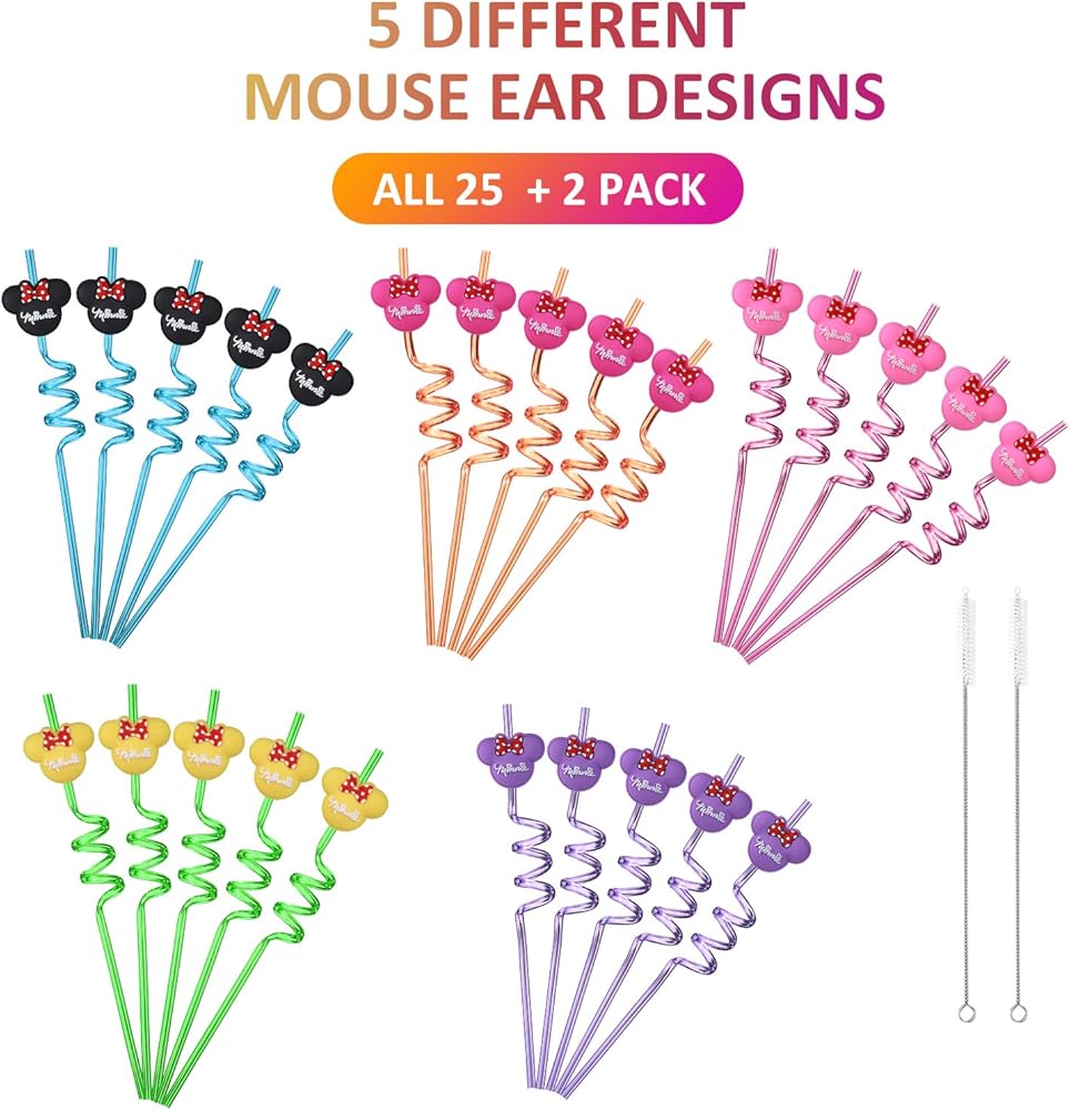 Package List: 25 Pack of Botnot Mouse Ear Straws + 2 Cleaning Brushes
