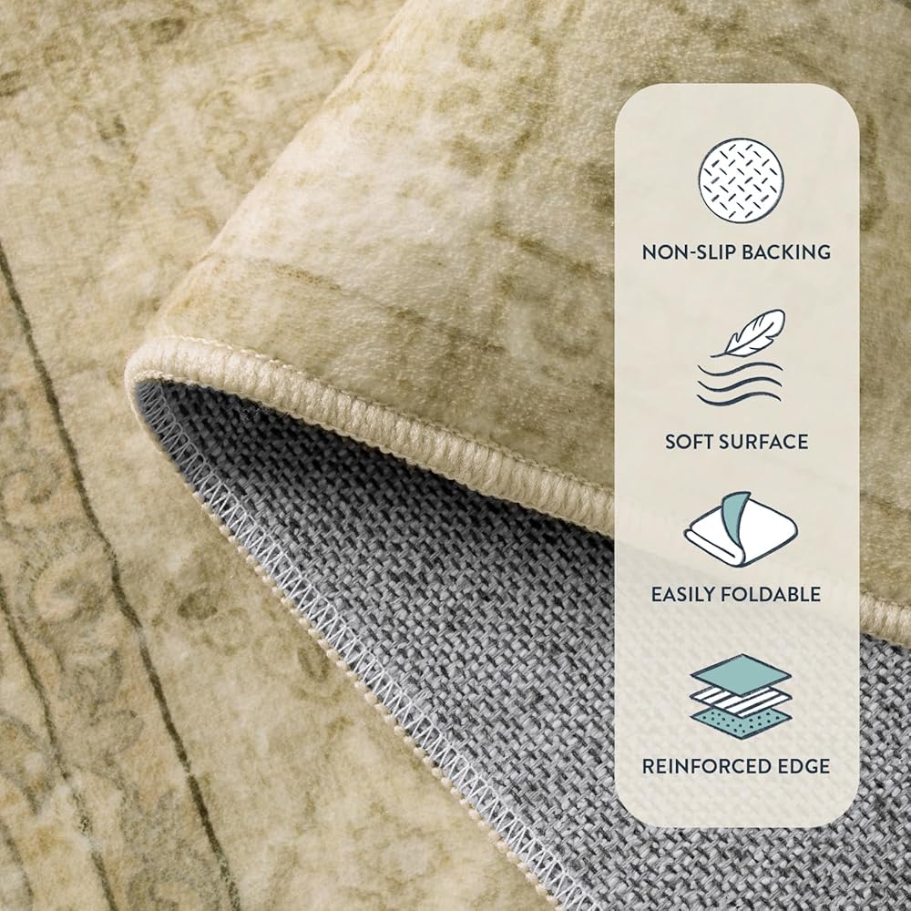 Lahome Vintage 8x10 Area Rugs, Soft Washable 8x10 Rugs for Living Room Bedroom, Ultra-Thin Non-Slip Cream Stain Resistant Large Accent Carpet for Office Dining Room(8x10ft,Cream)