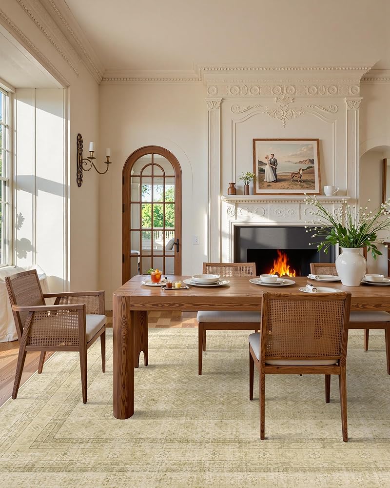 • Stain Resistance: Sturdy; Non-shedding; The dining room rug is ideal for entryway, kitchen, hallway and other daily indoor high-traffic areas where children or pets are active. Pretty prints and vintage tones bring traditional and timeless charm to your home