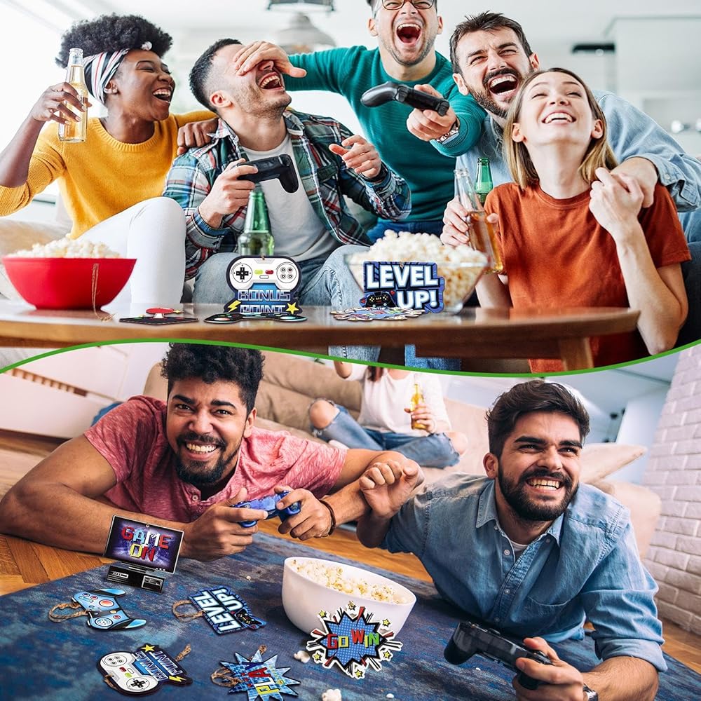 These video game party Christmas ornaments are designed with holes, and you can pass the provided ropes to hang them. You can hang these game wooden decorations on the wall, window, door to match other holiday decorations products.
