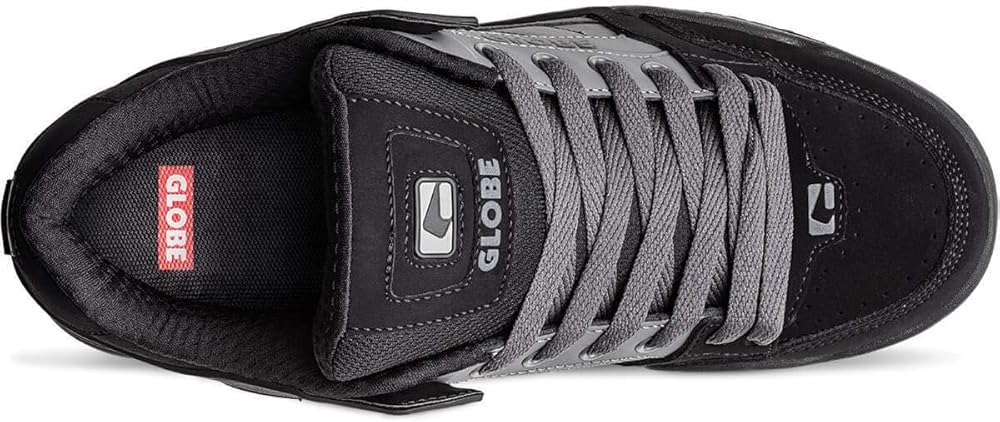 Rugged, fully padded skate shoe, with a slip on sock construction for comfort and added stability Step-in sock liner | TPR ollie reinforcement | Globe's S-TracTM sole pattern | TPR heel stabiliser