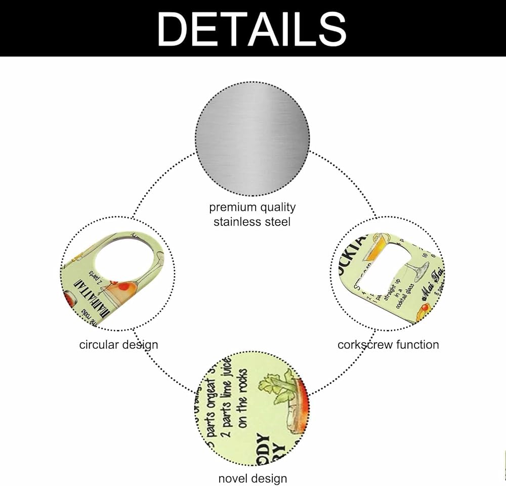 • Unique Design: Beer bottle opener is printed with double-sided printing, with multiple and interesting styles, no longer monotonous. The bottle opener is lightweight and portable, and has a round hole at the bottom of the handle for hanging, making it easy to store.