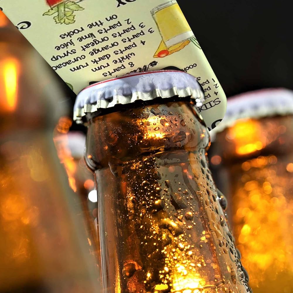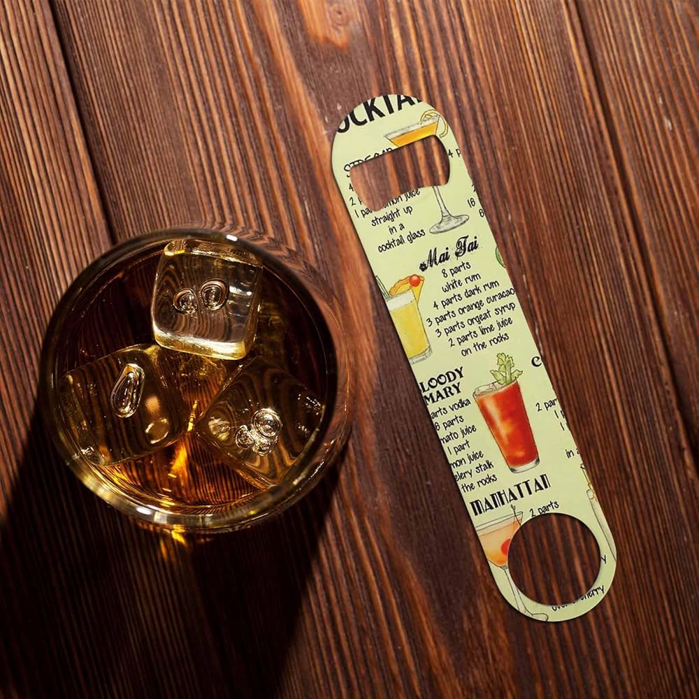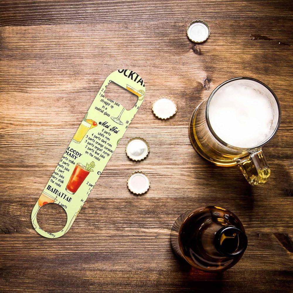 Made of stainless steel, these bottle openers are sturdy for long-term use, measure: 7" long x 1.5" wide, heavy-duty stainless steel handheld flat paddle design. The flat bottle opener is long enough and easy to grip. The swivel ring on the opposite side makes it easy to open the lid and do it like a pro! The bottle opener is printed on both sides, with many styles and fun, no longer monotonous. The flat opener is lightweight and portable, and has a round hole at the bottom of the handle for hanging, making it easy to store. Funny bottle opener for bartenders, restaurants, parties, kitchens, homes and more, perfect gift idea for bartender boyfriend girlfriend friend dad grandpa any man or woman.