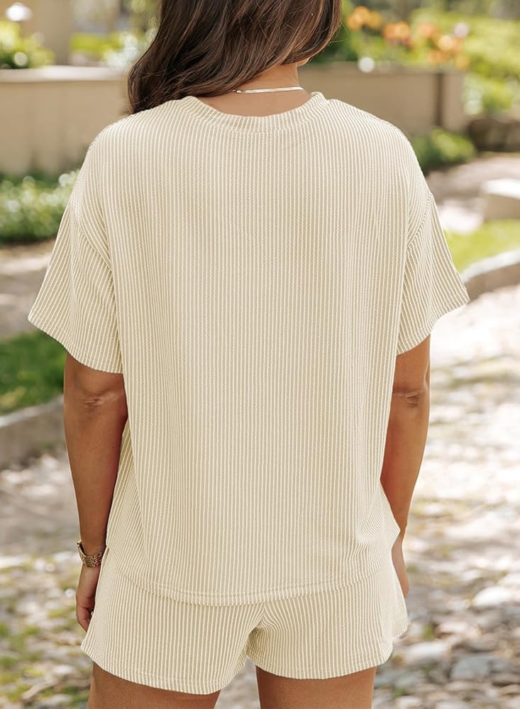 SHEWIN Women's 2 Piece Outfits Lounge Sets Casual Short Sleeve Shirts Shorts Cozy Pajamas Sweatsuit Set