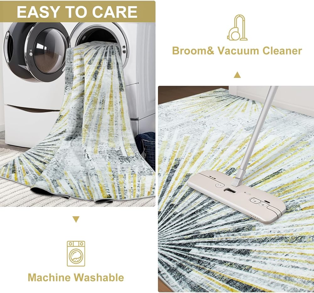 Washable: This Washable 6x9 Rug is a soft and shrink-resistant natural material that you can machine wash. We recommend washing on a low, gentle cycle with a neutral detergent and then air drying to prevent shrinkage. At the same time, regular vacuuming will help keep your washable rug looking new for longer and prevent dirt that is on the surface of the rug from getting embedded. Or just shake the rug to get the debris off or sweep it up