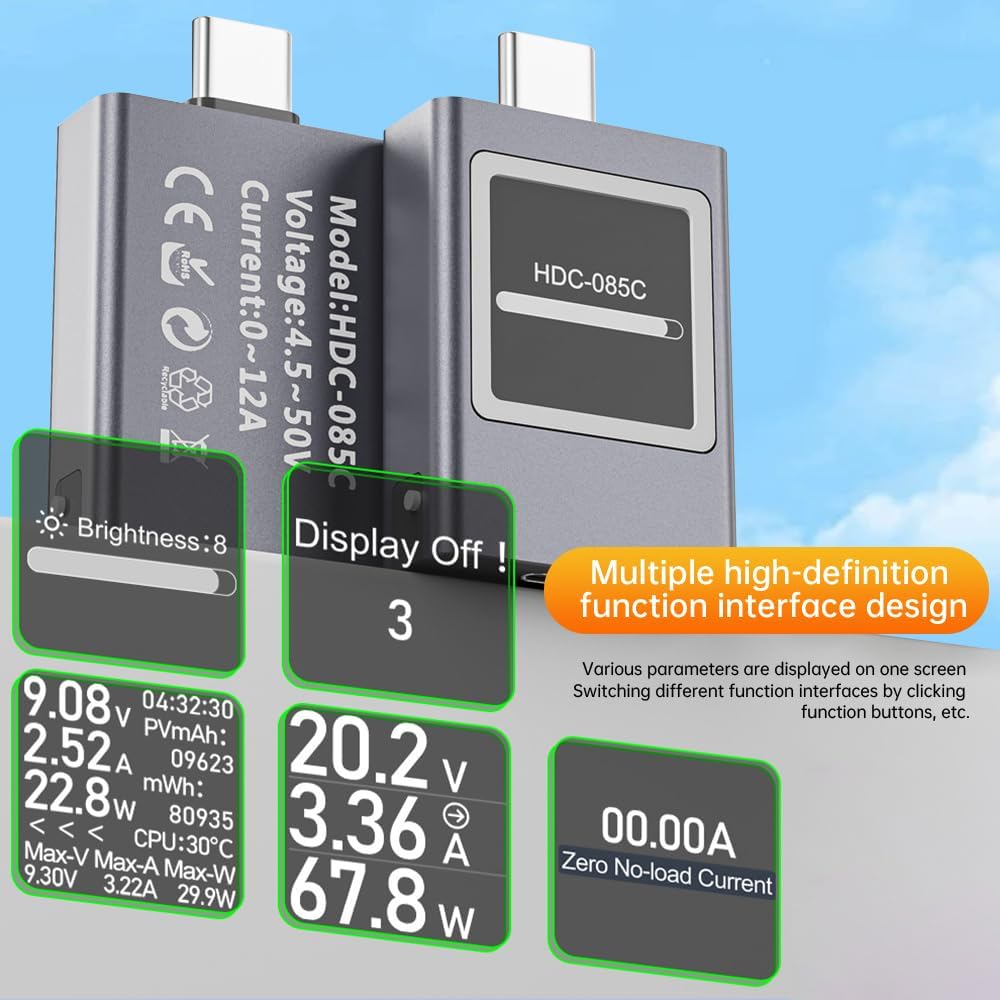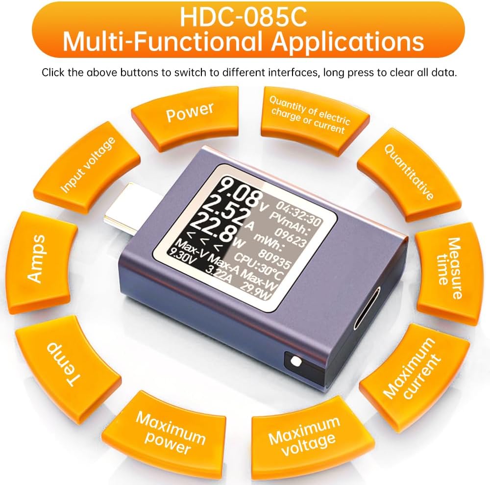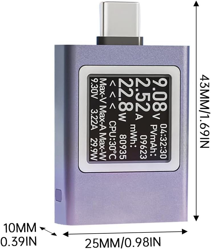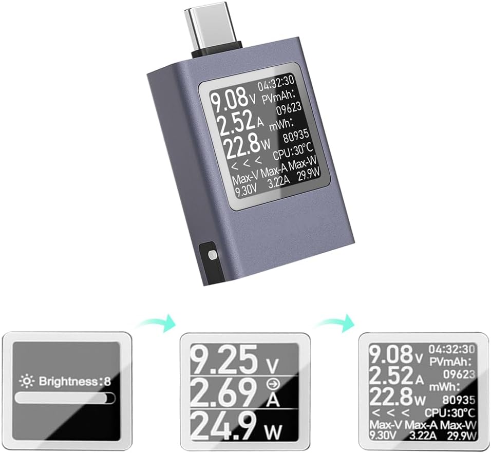 【Multifunctional USB C Power Meter】Usb c tester Designed to detect the charging status and process of USB-C devices. Supports PD3.1 48V, PD2.0, PD3.0, PPS, OC2.0, QC3.0, FCP, SCPAFC, PE, DASH VOOC, SuperV00C and more protocols. Support to detect charging performance of USB-C chargers, cables, power banks, wireless chargers, laptops, smartphones, and other USB-C devices. With a measurement accuracy comparable to professional-grade instruments at ±0.1%, it is an essential tool for testing USB-C ports.