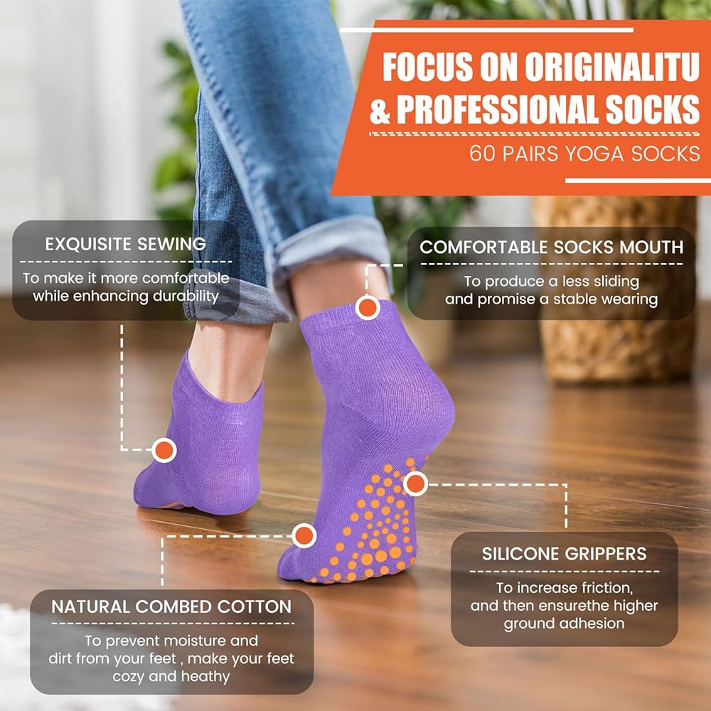 Abundant Quantity: our package includes 100 pairs of yoga socks for both men and women, stylishly colored and designed to cater for need, this bulk quantity ensures you'll have enough socks at your disposal; These socks with their vibrant colors and designs will provide the ideal match with your workout gear