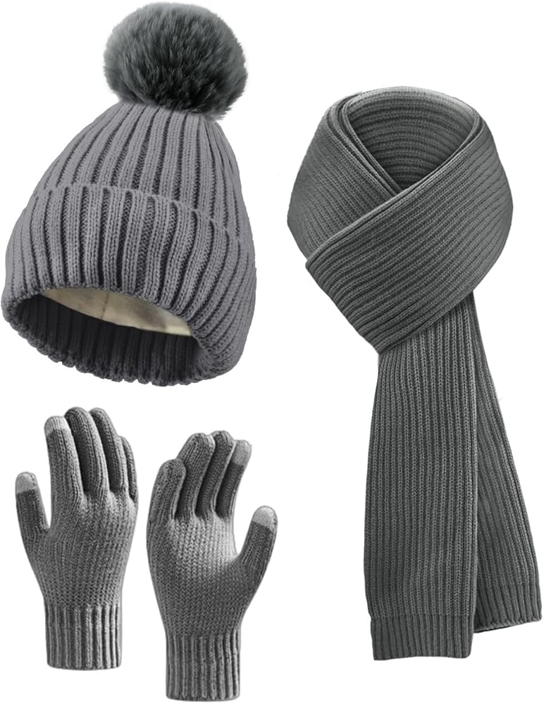 Fashion Winter Accessories Set: The winter gloves women, winter hat and scarf set are made of high quality material, with premium acrylic. The inner of the beanie and gloves are lined with thermal fleece. Wearing this unisex adult 3 in 1 set, make you stay warm and cozy during cold winters!