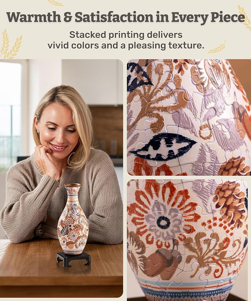 🧩 Challenging 3D Puzzles for Adults - The pattern on this puzzle vase is so vivid and eye-catching, it'll be sure to add a touch of personality to any room. Plus, PieceRelax offers missing piece replacement for free.