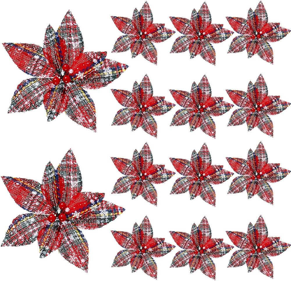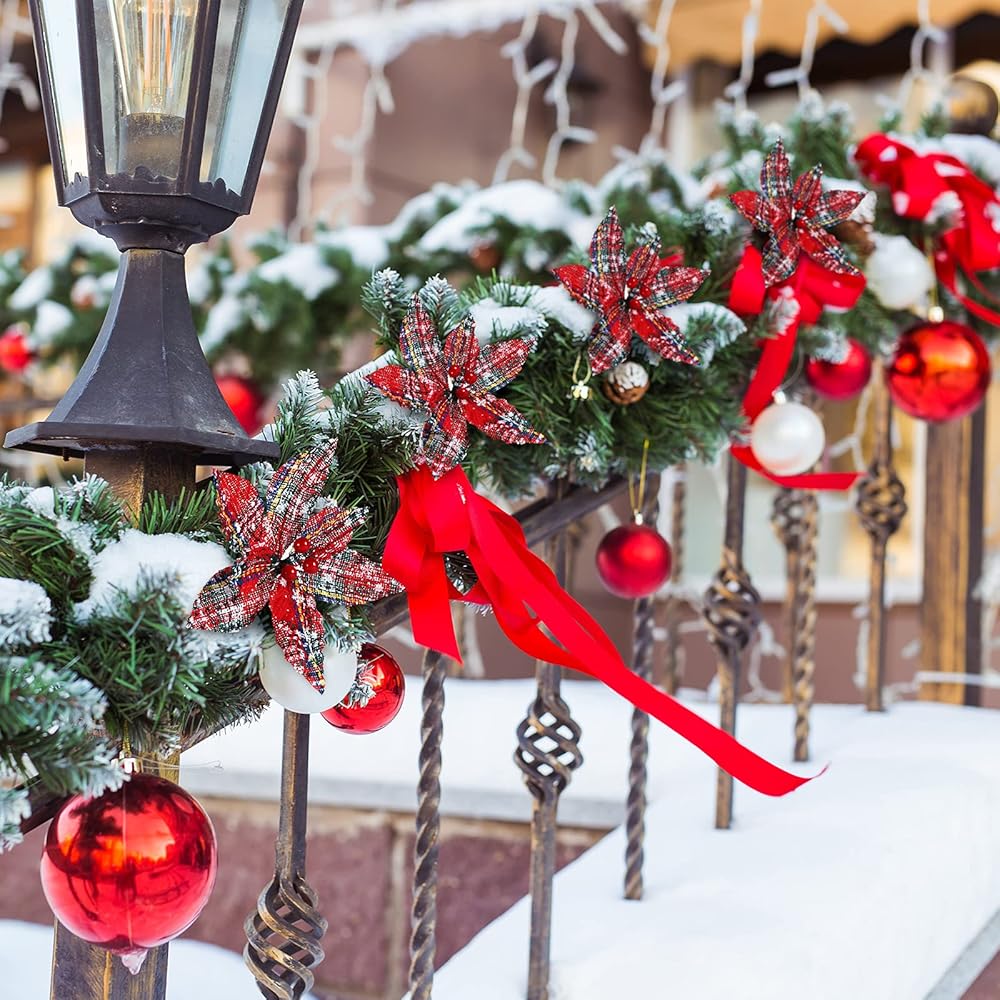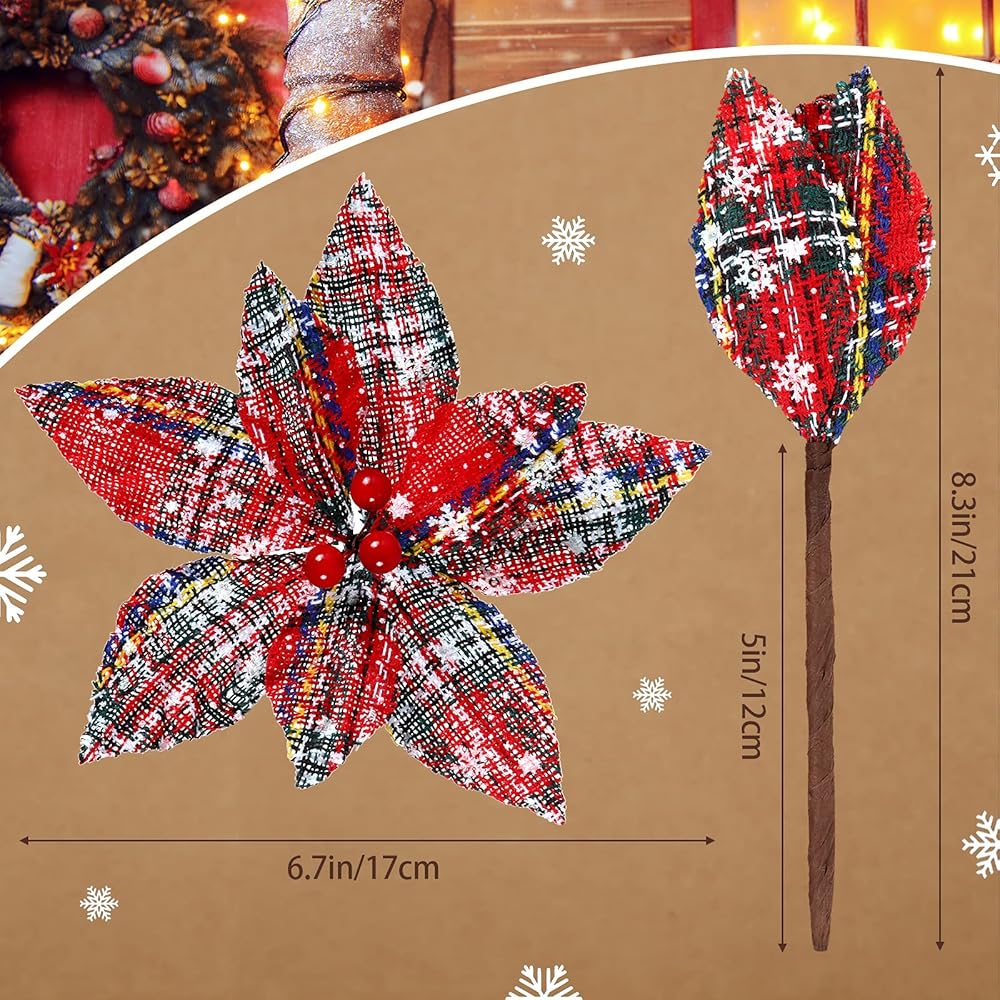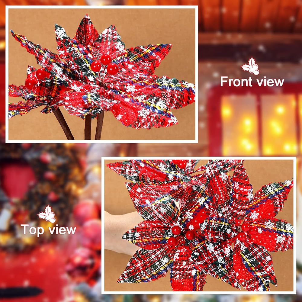These buffalo plaid poinsettia ornaments are suitable for Christmas trees, Christmas wreath, table centerpiece and more, which will add a strong festival atmosphere.