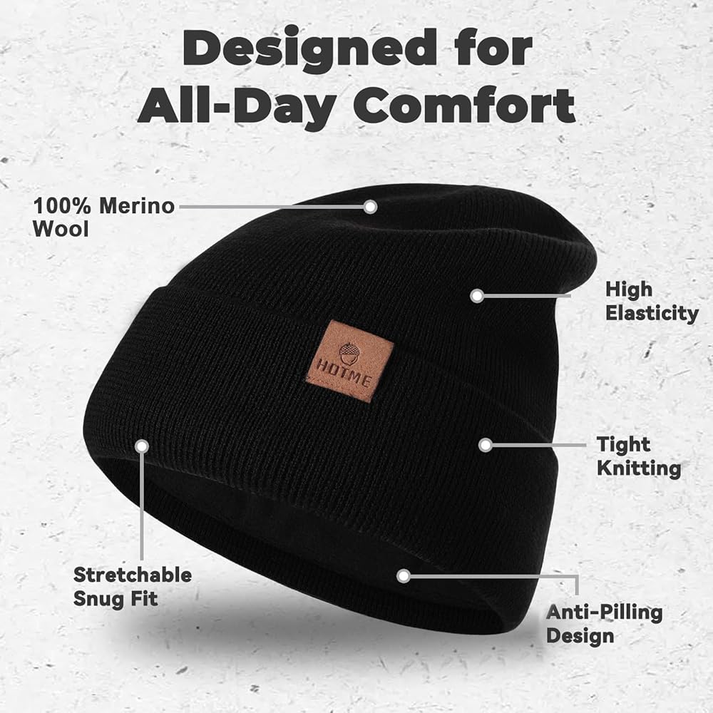 【Soft & Warm】- 100% all natural superfine 18.5-micron Merino wool ensures comfort all day long – no itch! Unisex Merino wool cold weather hat for men's and women's use while camping, hiking, hunting, working, playing sports, skiing, or partaking in any outdoors activity. Features an adjustable roll cuff ear band for added warmth.
