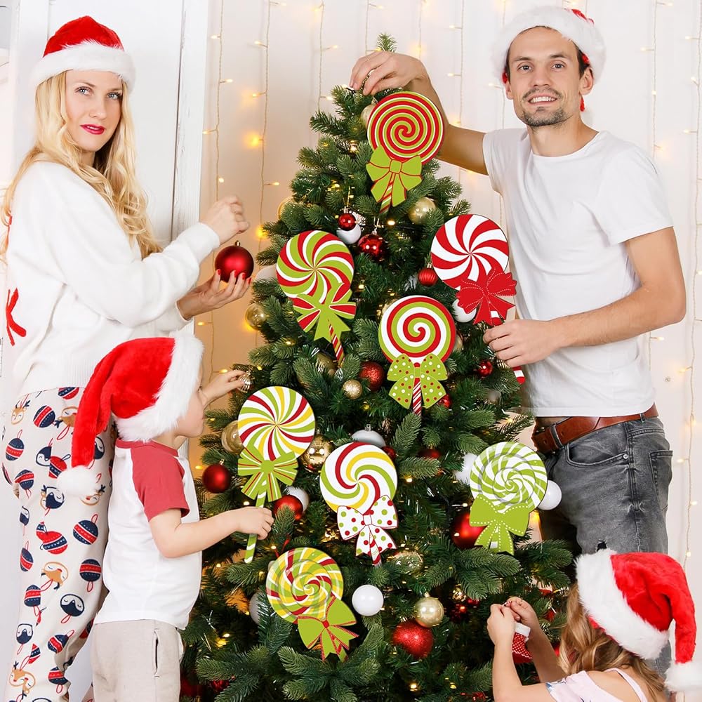 Our wooden Christmas tree ornaments feature the striped design of lollipops. These triggers warm, joyous holiday emotions and is a massive hit with adults. Enjoy the sweetness of the holiday season with our charming ornament set.